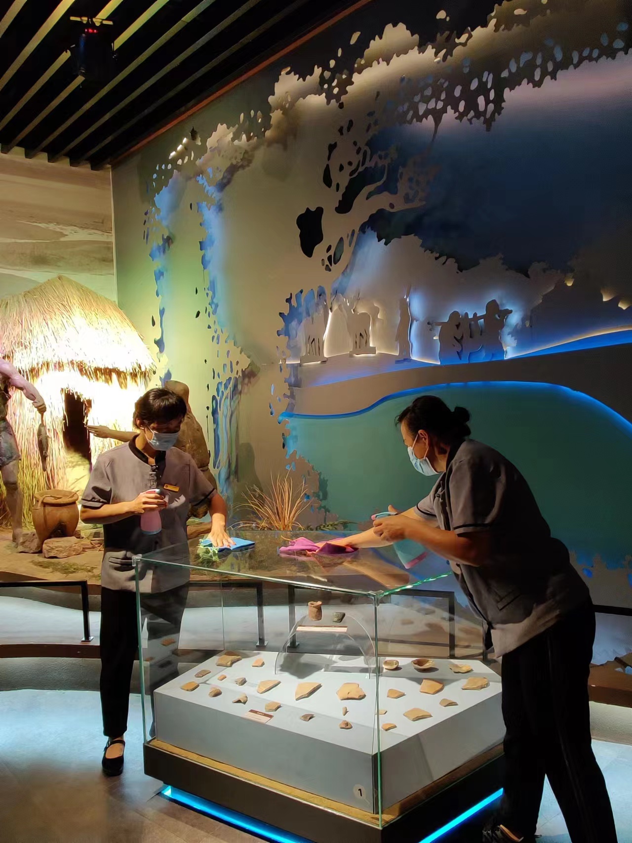 按照惯例,衡水市博物馆周一闭馆,但全体工作人员依然忙个不停,有的在入口拿着消毒喷雾器对台阶、大门等重点位置进行消杀,有的则拿着抹布对各个展柜进行重新擦拭、清洁。“工作人员将对博物馆各场馆进行全面统一清洁消杀,以洁净放心的环境,迎接明天的正式开馆!”衡水市博物馆工作人员告诉记者。恢复开馆后,为严格落实常态化疫情防控措施,博物馆仍将严格执行网络预约、限流参观。
