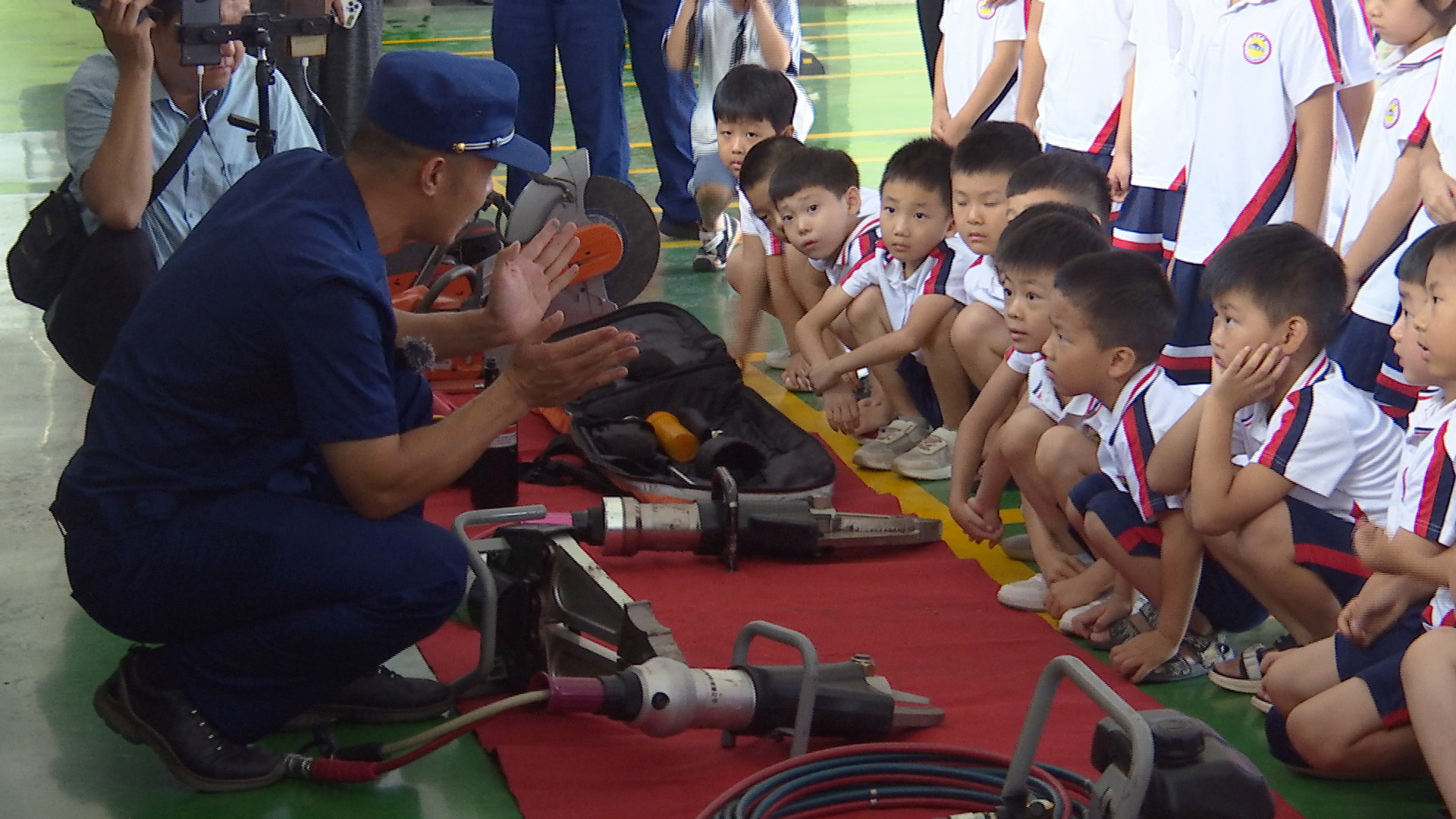 在参观过程中,消防员穿插讲解了日常用火、用电、游泳等安全常识和自救方法,在孩子们心里种下安全的种子。