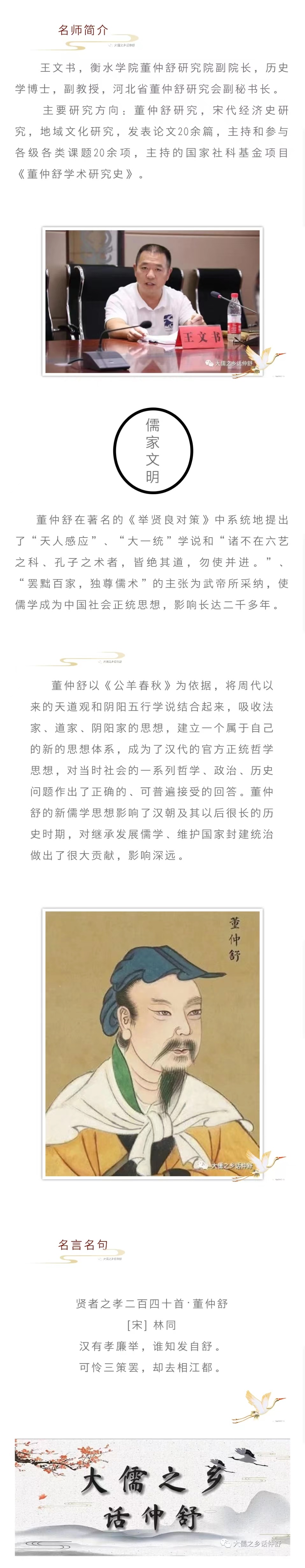 来源:衡水广播电视台 点赞 +1 微博 微信 我要评论 发布 相关推荐 第五届儒学史研讨会暨河北省董仲舒研究会2025学术年会举办 衡水速览 2025-11-24 2025衡水·董仲舒儒家思想学术研讨会举行 海内外百余位专家学者论道湖城 进行传统智慧与现代对话 衡水速览 2025-11-02 2025衡水·董仲舒儒家思想学术研讨会开幕 政情 2025-11-02 仲景宛西制药董事长孙锋:备受鼓舞,将保持定力打造大健康产业 商讯 2025-02-20 衡水市博物馆“大汉儒宗——董仲舒儒学文化专题展”走进内蒙古阿拉善 衡水速览 2025-01-17 《大儒董仲舒》歌舞剧在衡水首演 衡水速览 2024-12-31 衡水学院首部原创歌舞剧《大儒董仲舒》举行首映式 在现场 2024-12-27 热门 一天 三天 一周 1 拾光纪·马年再会老朋友,上个马年他赠予习近平一匹汗血马 2 衡水:少年走失急坏家人 公交调度员助力寻回 3 衡水文旅春日上新 十大场景开启沉浸式春游新体验 4 衡水发布七大主题线路开启春日盛宴 “湖城花事·衡水有约”诚邀京津冀游客共赴花期 5 春“植”正当时!衡水市园林中心按下春季补植增绿“加速键” 6 “一县一主题”打造沉浸式赏花体验 衡水全面启动“探秘小城故事·共赴春日芳华”主题活动 7 阜城县漫河镇“二月二”群众文艺展演热闹开演 8 国网景县供电公司:“立体巡检+智慧监控”护航春灌 9 安平中燃组织消防安全专项培训 10 贯彻落实全国两会精神|一体推进更高水平平安河北法治河北建设 为实现“十五五”良好开局贡献政法力量 1 拾光纪·马年再会老朋友,上个马年他赠予习近平一匹汗血马 2 衡水推出不动产“带封过户”改革 3 净化网络餐饮安全环境 衡水市569家餐饮外卖被下线 4 抢抓农时忙春管 科技赋能保丰产 ——衡水市桃城区春管春种见闻 5 饶阳县机械化作业助力红薯产业跑出 振兴“加速度” 6 春风启新程 银龄绽芳华 ——衡水老年大学2026年春季新学期开学啦 7 衡水市商务局系列“组合拳”全链条赋能企业“出海”拓市场 8 【新闻发布】 衡水发布“双走双帮”专项行动方案 千万元资金直击特色产业集群痛点 9 【“十五五”开局看衡水】数智领航“丝”路新程——安平丝网产业蝶变再升级 10 老场景唤醒温暖记忆 冀州老街开启常态化运营 1 拾光纪·马年再会老朋友,上个马年他赠予习近平一匹汗血马 2 人勤春来早 春管正当时——衡水市扎实推进春季农业生产纪实 3 衡水发布2月份食品安全“红黑榜” 194家生产经营主体上榜 4 衡水市区宝云公园:修剪养护已完工 静待花开映日红 5 当“超级充电宝”装上“智慧大脑”——河北武强鸿布储能电站探访 6 把“最活跃地带”打造成“最坚强阵地” 衡水以三大抓手破题新就业群体党建 7 衡水市启动社会救助兜底保障集中核查工作 8 今年衡水将完成200户特殊困难老年人家庭适老化改造 9 衡水市环卫中心开展便道冲洗专项行动 为城市环境“洗颜换妆” 10 衡水籍运动员米兰冬残奥会上再摘银! 王鹏耀获单板滑雪项目亚军 广告 广告 广告 24小时 1 衡水市第三人民医院“爱肝日”惠民活动受热捧——采血筛查、影像诊断、中医理疗一站式服务市民 2 两个月新增经营主体177家 同比增长近四成 衡水海关厚植沃土育“新苗” 3 千年文脉贯古今 一城新风醉宾朋 ——武邑县全力推动文化旅游产业高质量发展 4 荐读|衡水思水 5 把春耕搬上屏幕 武邑“新农人”从田间忙到“云端” 6 衡水市武邑县打出“组合拳”力夺首季“开门红” 7 衡水市武邑县以产教融合为抓手赋能县域经济高质量发展 8 河北衡水:春日公园乐融融 文化生活暖人心 9 “一县一主题”打造沉浸式赏花体验 衡水全面启动“探秘小城故事·共赴春日芳华”主题活动 10 衡水文旅春日上新 十大场景开启沉浸式春游新体验