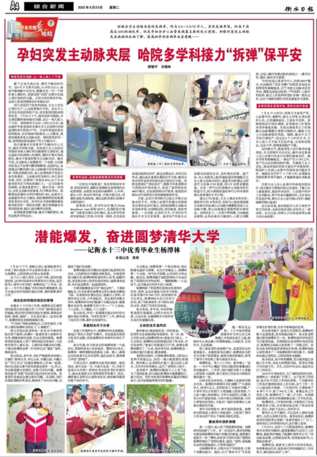担任着衡水市危重孕产妇救治中心主任,姚水平经验丰富。在获悉王女士诉说后背部似有被人捶打样的痛感等主要症状,通过查体尽快排除心肌梗死、腰肌纤维炎等疾病后,姚水平高度怀疑为主动脉夹层。姚水平说,主动脉是人体最粗的一个血管,主动脉夹层是由于血管内膜局部撕裂,血流冲击,血液通过内膜的破口进入动脉壁中层而形成血肿,导致血管壁分层,是心血管疾病中危及生命的急重症。主动脉夹层发病后,如不及时发现、治疗,近期死亡率高达60%;由于主动脉承受的压力和血流量巨大,一旦主动脉夹层破裂,会造成患者死亡。姚水平进一步指出,女性主动脉夹层患者,约半数是孕妇。妊娠期血容量比未孕时增加约30%,血流对主动脉壁的冲击力增加,致妊娠期特别是晚期更容易发生夹层。而孕妇合并急性胸背痛是极其复杂的一类临床症候,部分症候蕴含非常凶险疾病,漏诊、误诊概率比较高。