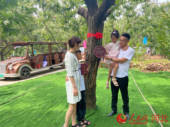认养人在为自己认养的板栗树挂牌。 人民网 付兆飒摄