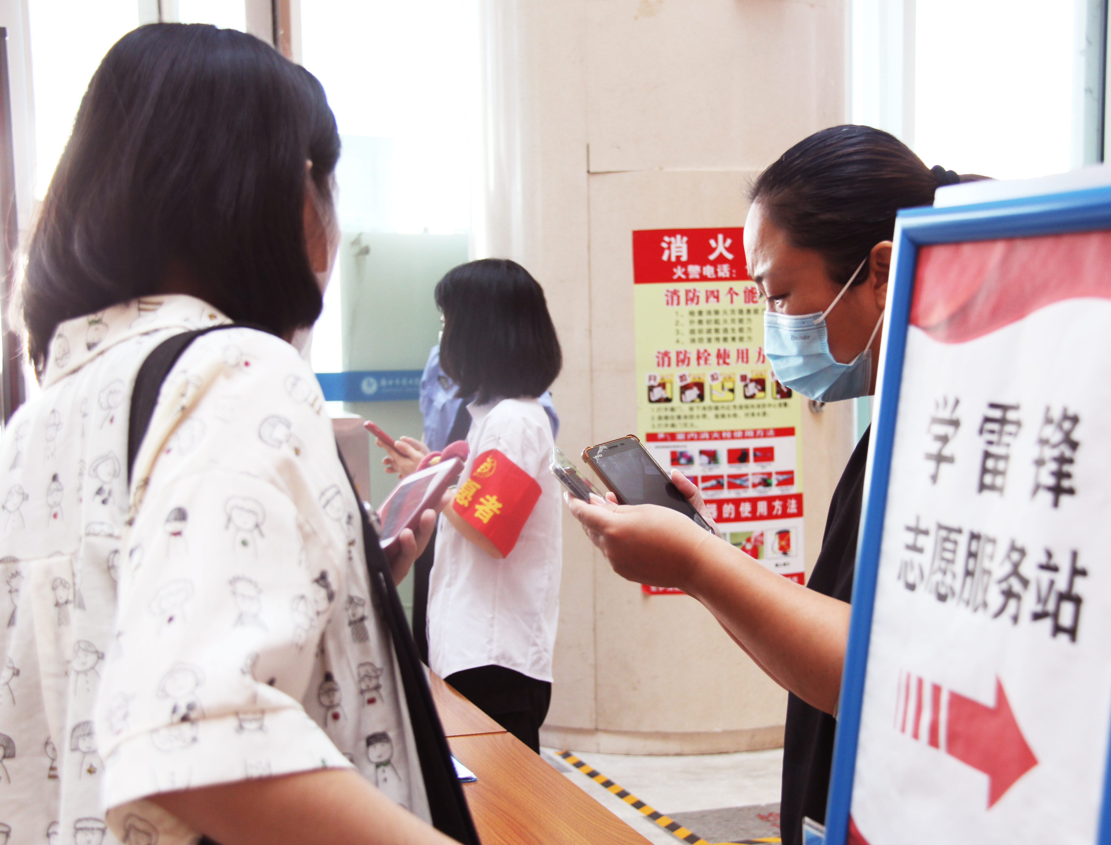 据了解,为了给读者提供坚实防护保障,工作人员每天上午、下午分四次对馆内地面、扶手、楼梯间、书架、电梯等区域进行全面消毒。读者进出图书馆需要按照防疫要求,在馆期间,须全程佩戴口罩,做好个人防护。