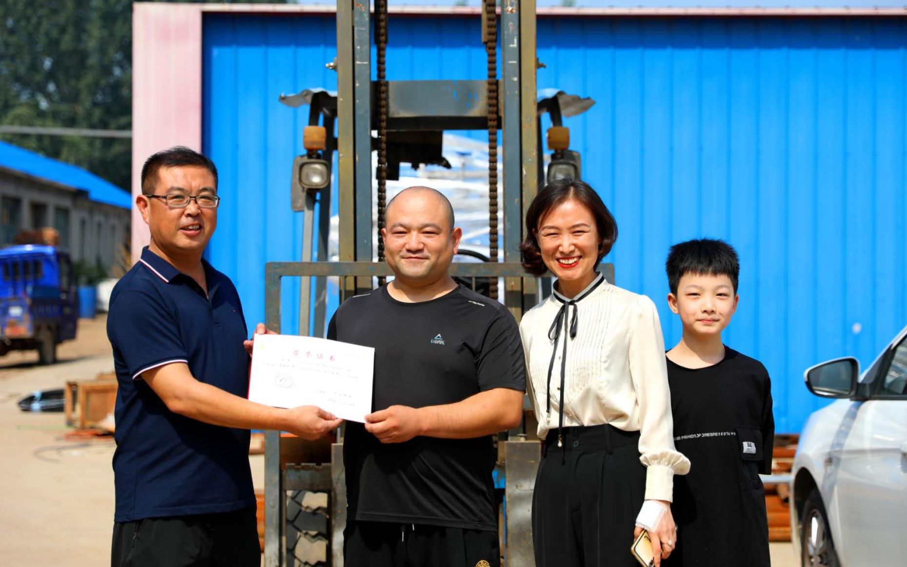 8月22日深夜,枣强县建设北路一商铺突发火灾,火势十分凶猛,店主一家四口被困在二楼。危急时刻,赵杰和妻子明瑞及周围居民赶至现场。赵杰从自家厂里开出叉车,在周围居民的帮助下,利用叉车从起火商铺的二楼窗户处,接出被困四人。