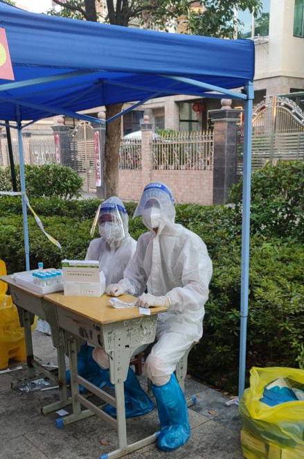 近期,伴随江西疫情形势变化,新干县开展全员核酸检测。阳光人寿新干支公司积极响应号召,组织多位员工在城北花园核酸检测点协助核酸采样工作。穿上闷热的防护服,大家化身“大白”,不惧高温,倒班值守,以保证完成任务。