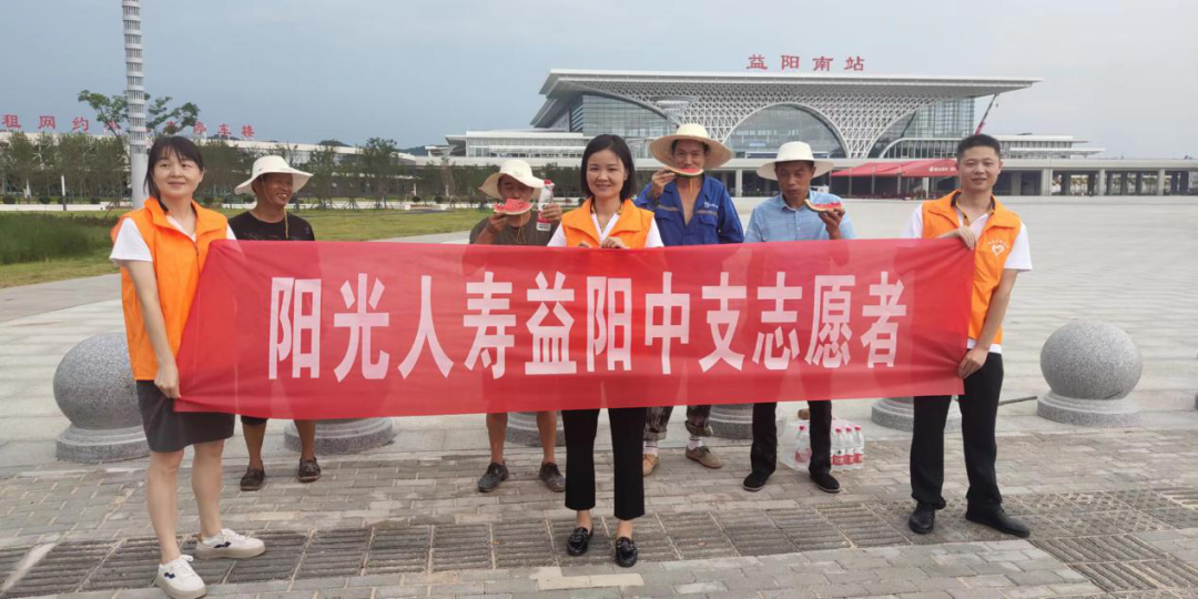 同样坚守岗位的还有诸多建筑工人。七月以来,湖南省益阳市持续的高温天气给“高铁南站”工程项目如期竣工带来不小的挑战,一线建筑工人和时间赛跑,坚守在工作岗位。湖南省分公司益阳中支组织员工开展夏日“送清凉”志愿者活动,为奋战在益阳市“高铁南站”工程项目的一线建筑工人送来西瓜、矿泉水等防暑物品,提醒他们要加强高温环境下的自我防护意识,做好防暑措施。