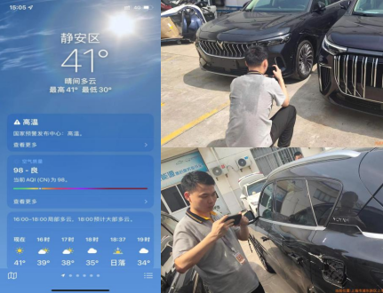上海分公司为了保证客户理赔时效,车险查勘人员每天在烈日下工作超10小时,穿梭于各个事故现场,仔细核实车辆的每一处损失。高温下,不到五分钟查勘服已然湿透,但他们没有丝毫松懈和降低服务标准,为客户耐心细致讲解理赔流程。