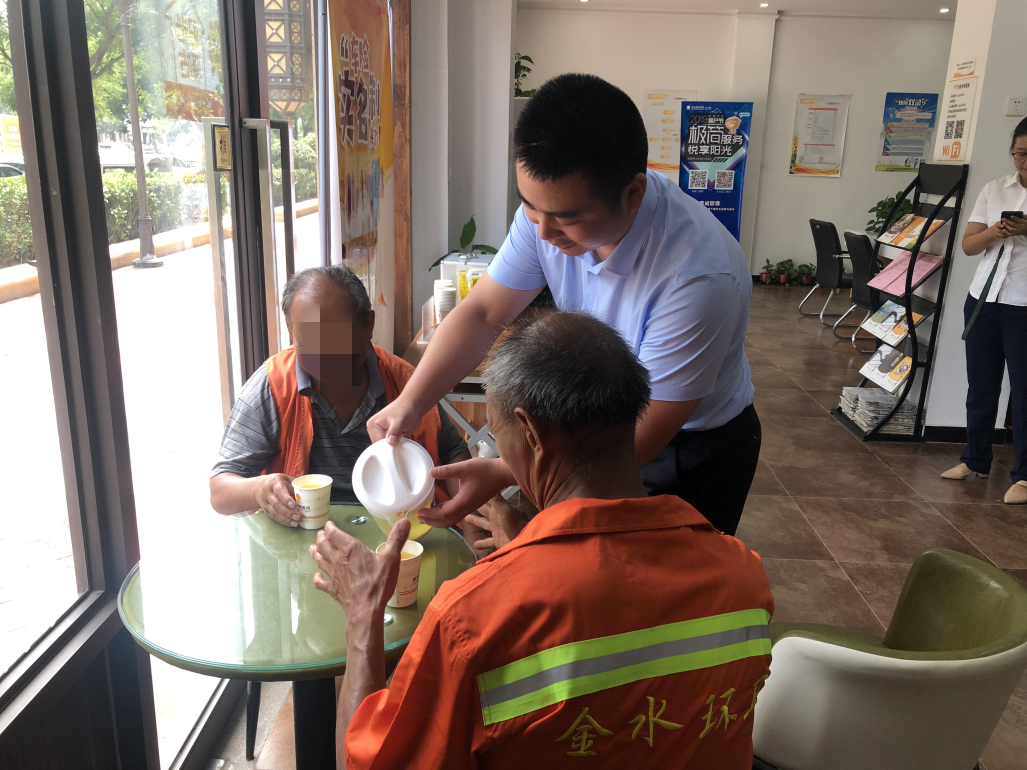 高温天气对老龄人群也带来了不少影响,阳光财险福建分公司宁德中支则将“送清凉”活动覆盖至老年人,为来往的老年群体赠送凉茶、矿泉水等解暑饮品的同时,向老年群体宣传消费者权益保护金融知识。来往的老年人群纷纷道谢,“哎呀,这种天气,人都要被烤熟了,喝口水总算是缓了过来。歇脚喝茶之余,还为我普及金融知识,你们太贴心了!”