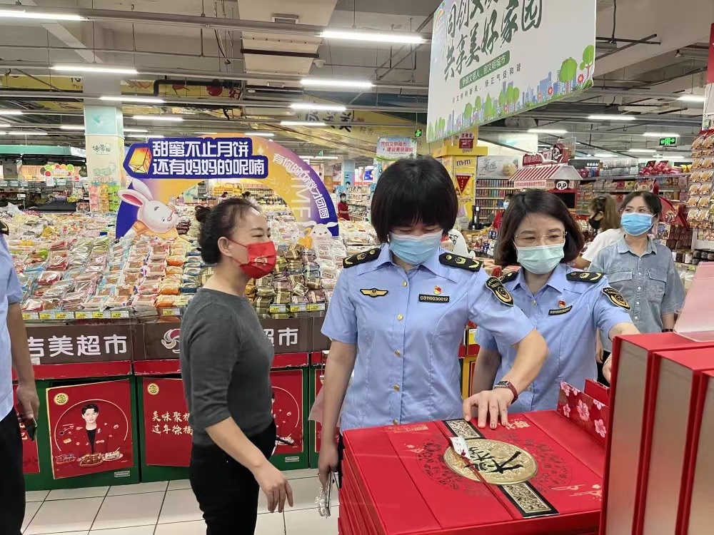 监管人员深入辖区内商场超市、餐饮饭店、糕点店铺等经营单位,从食品安全、价格行为、过度包装、广告宣传等方面规范市场主体经营行为,通过查验经营者的亮照亮证、进货查验制度执行、商品明码标价等情况,重点对在售月饼外包装的生产厂商、厂址、保质期、生产日期等信息是否标注齐全,贮存环境是否清洁卫生、符合标识进行检查。向市场主体强调严格把好进货关,确保源头可靠可追溯,切实维护消费者合法权益,营造良好的消费环境。