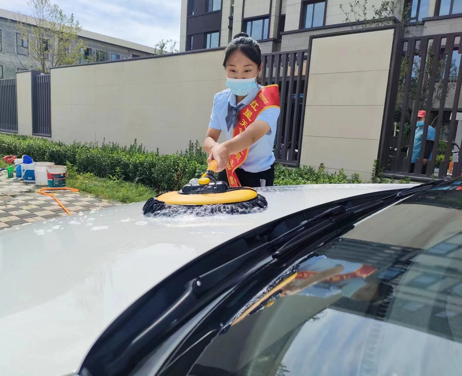 一台电机、一个喷枪、一个水桶、几块毛巾……当天上午9时30分,红星物业在小区门口开展了便民洗车活动。物业工作人员轮番上阵,飞舞的泡沫、跳动的水花,心灵和汗水的交融,营造出一幅幅热火朝天的景象。正在等待洗车的7号楼的张先生对免费洗车活动很是看好,“平时物业经常给我们提供暖心服务,在这个小区居住感觉倍儿幸福。”一辆辆洁净如新的车,无不印证着红星物业用心用情服务的初衷!