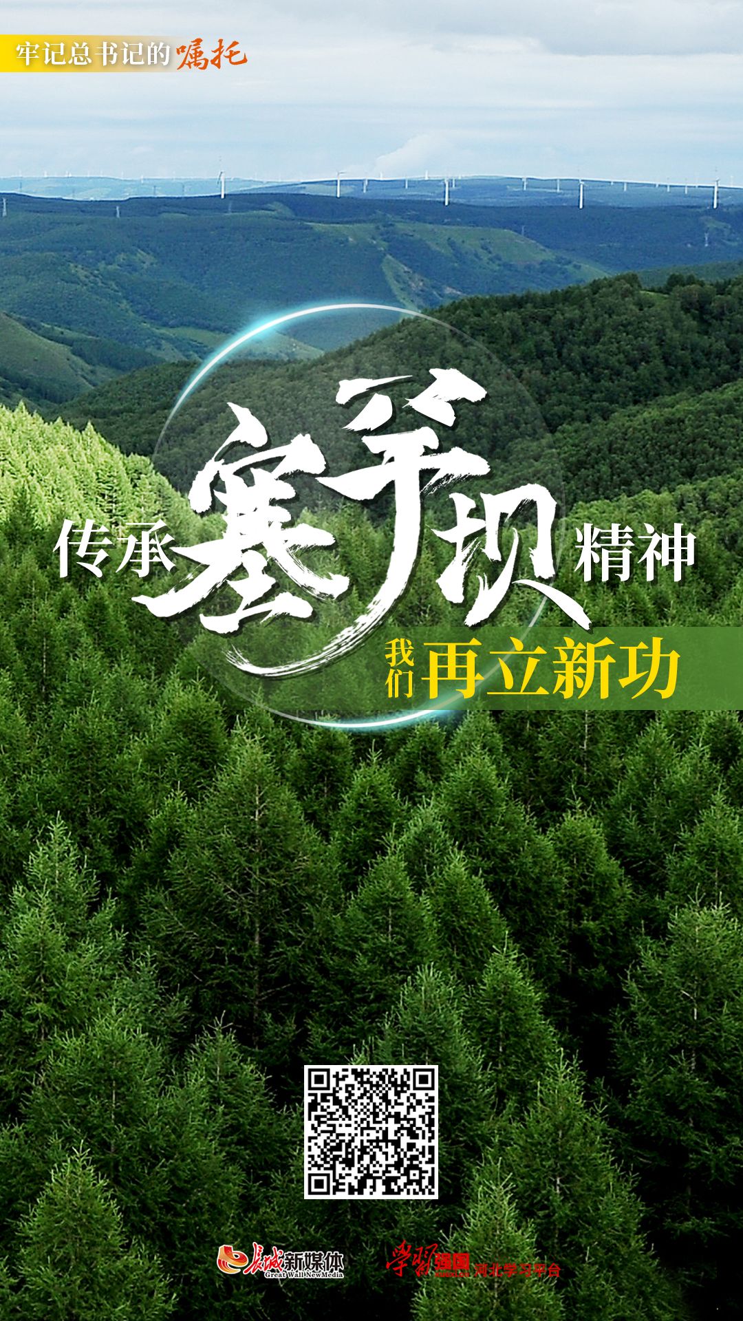 2021年8月23日下午,在承德市考察的习近平总书记,首站来到塞罕坝机械林场,深入绿意盎然的无边林海,赞誉荒漠变绿洲的精神力量。习近平总书记勉励塞罕坝林场职工:“要传承好塞罕坝精神,深刻理解和落实生态文明理念,再接再厉、二次创业,在实现第二个百年奋斗目标新征程上再建功立业。”