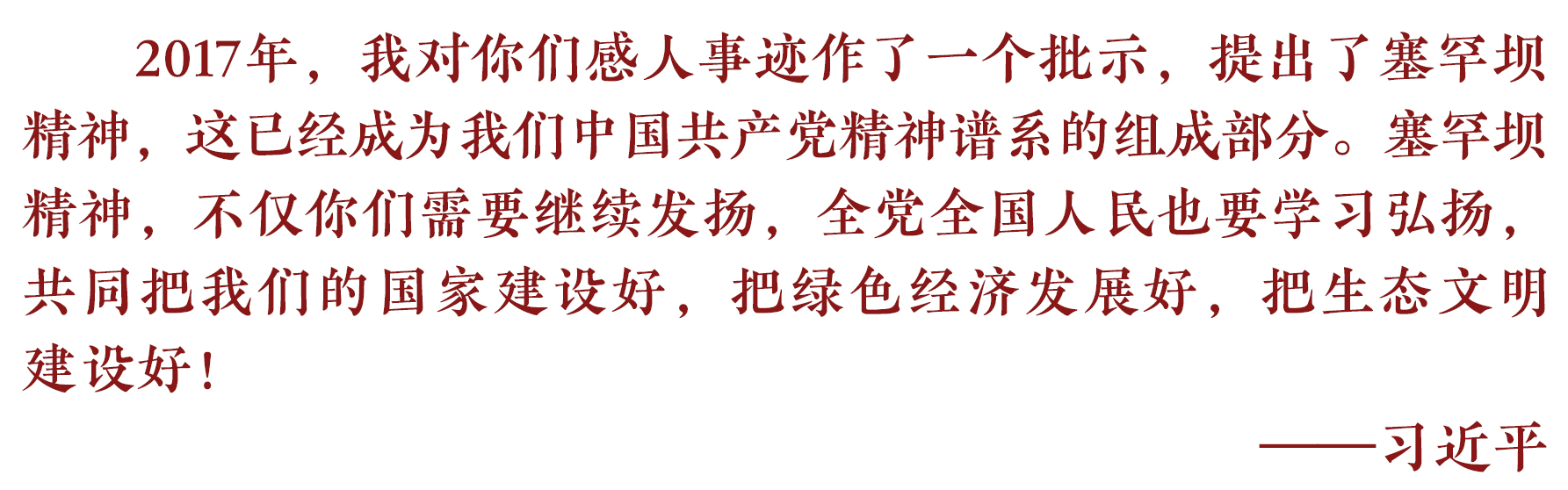 从一棵树到一片“海”,塞罕坝人几十年坚持,创造出当之无愧的生态文明建设范例。现在的塞罕坝,被称为“河的源头、云的故乡、花的世界、林的海洋、鸟的天堂”。代代传承,不负嘱托。如今,新一代塞罕坝人正在茫茫林海续写新的绿色奇迹。