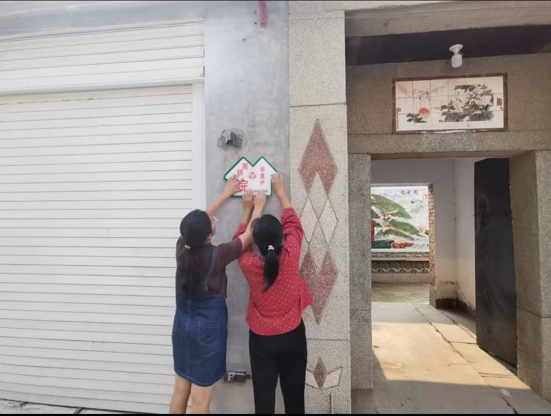 为“美丽庭院”挂牌。羡国磊 摄