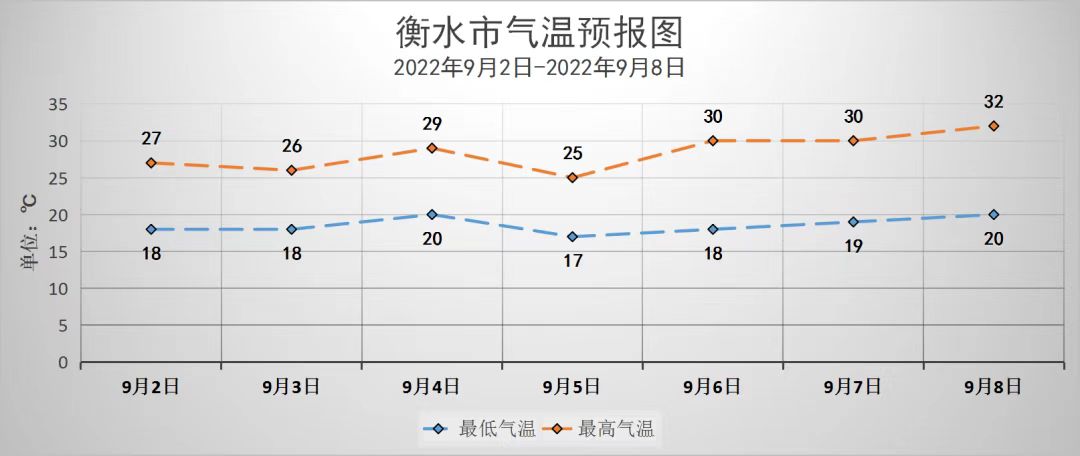 具体天气预报为:9月1日夜间:多云转晴,东北风2~3级,最低气温18℃。9月2日白天:晴间多云,偏东风2~3级,最高气温27℃。2日夜间:晴间多云,东南风2~3级,最低气温18℃。9月3日,多云,气温26~18℃。9月4日,多云转晴,气温29~20℃。
