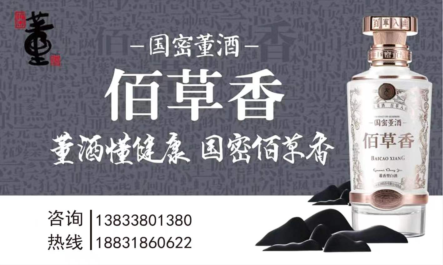 百年古法工艺酿制,它采用优质高梁为原料,融汇130多味名贵本草入曲。其中不乏名贵中药材,首先从130多种名药中四种温补药材:熟地、杜仲、鹿胶、益智仁;其中熟地具有补血滋阴功效,可用于血虚萎黄、眩晕等症状,也是我们熟知的药品《六味地黄丸》的主要成分之一;杜仲选取本地特有的野生杜仲,其具有补肝肾、强筋骨等功能;鹿胶具有温补、补肾等功能;益智仁来源于姜科植物益智的成熟果实,其功效为温脾止泻,暖肾缩尿固精,专治呕吐、泄泻、腹中冷痛,尿频等。仅仅这四味就跟大家的身体健康状况紧紧相连。在以贵州大娄山脉地下泉水为酿造用水,小曲、小窖池制取酒醅,大曲、大窖池制取香醅,药曲入酒,双醅串蒸,活色生香,香生百味,味聚人生,大窖酒的浓郁芳香与甘冽爽口,小窖酒的绵柔回甜与醇和淡雅,尽在董酒“佰草香”。经典瓶身上的百草图,为百草入曲而董香萦绕,百草生香,香生百味,亦是人生百味,自在随心。这个草木入曲很明显就是和中医有关系。酒,味辛而苦甘,有温通血脉、宣散药力、温暖肠胃、祛散风寒、振奋阳气、消除疲劳等作用。适量饮酒,可以怡情助兴。医家之所以喜好用酒,是取其善行药势而达于脏腑、四肢百骸之性, 故有“酒为百药之长”的说法。