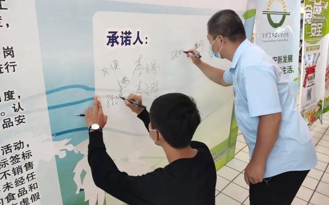 活动现场,吉美、万德福、信誉楼等大中型超市负责人均在《放心食品销售公开承诺书》签名,向社会郑重承诺,切实做到严格落实主体责任,严格食品安全自查,严控食品采购来源,严控食品销售过程,严格员工健康管理,严格场所环境卫生等六方面内容,同时欢迎社会各界对各超市的承诺落实情况进行监督指导。