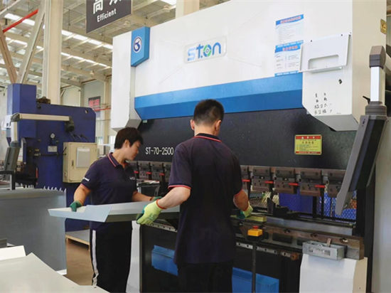 宏贯路桥科技有限公司工人正在生产轨道设备。复兴区融媒体中心供图
