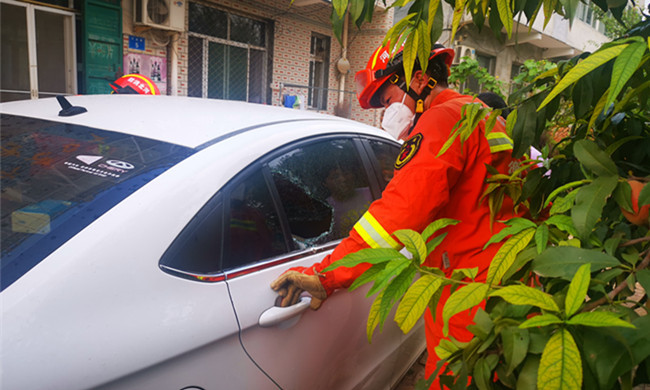 消防救援人员到达场后发现,孩子在汽车主驾驶位置,此时车辆处于熄火锁闭状态,车门、车窗都无法打开。经询问得知,报警人是孩子的母亲,也是车主,当时,她将孩子放到车内玩耍,孩子误触锁车键将自己反锁在车内,两把车钥匙均在车内,情急之下只能报警求助。