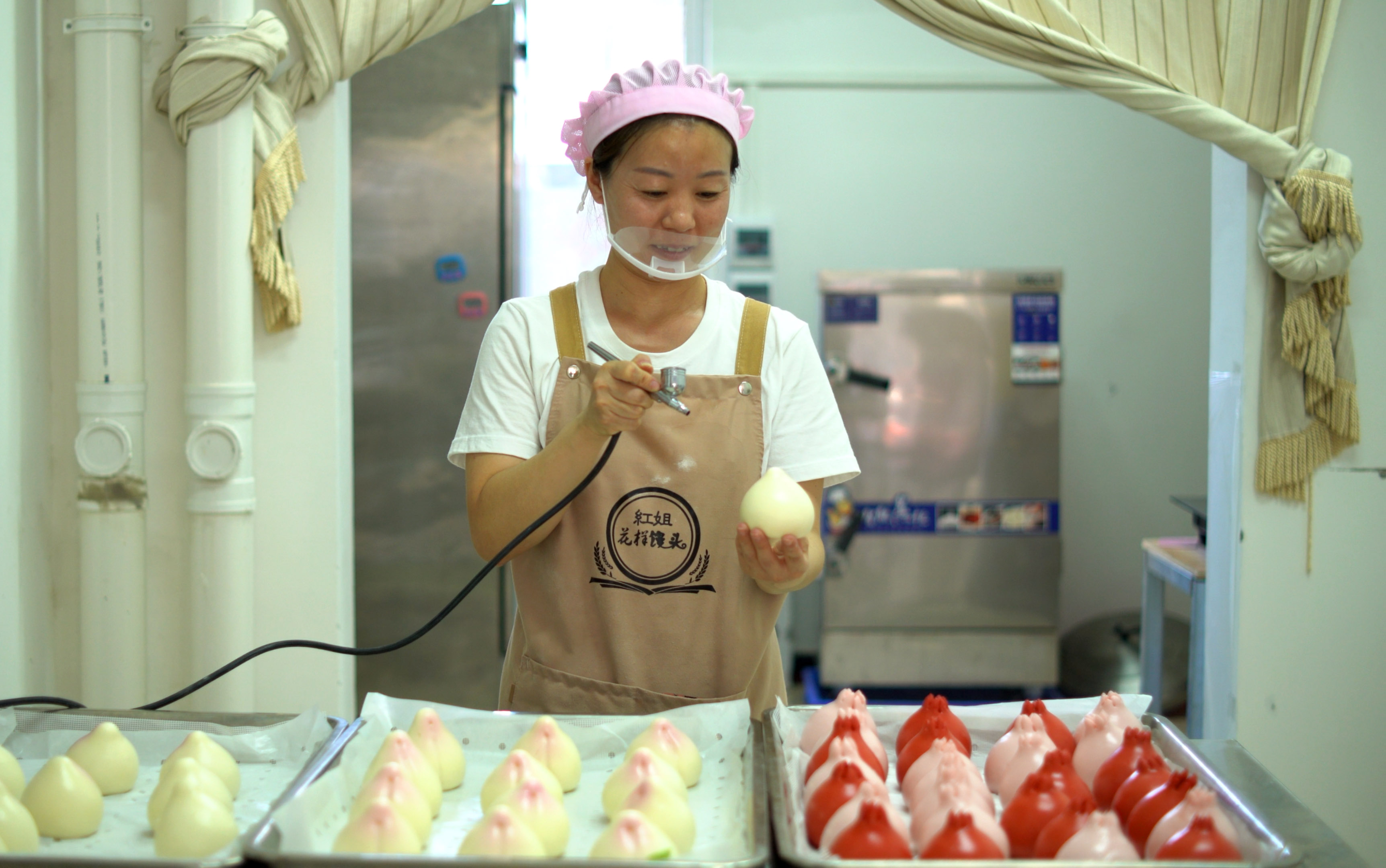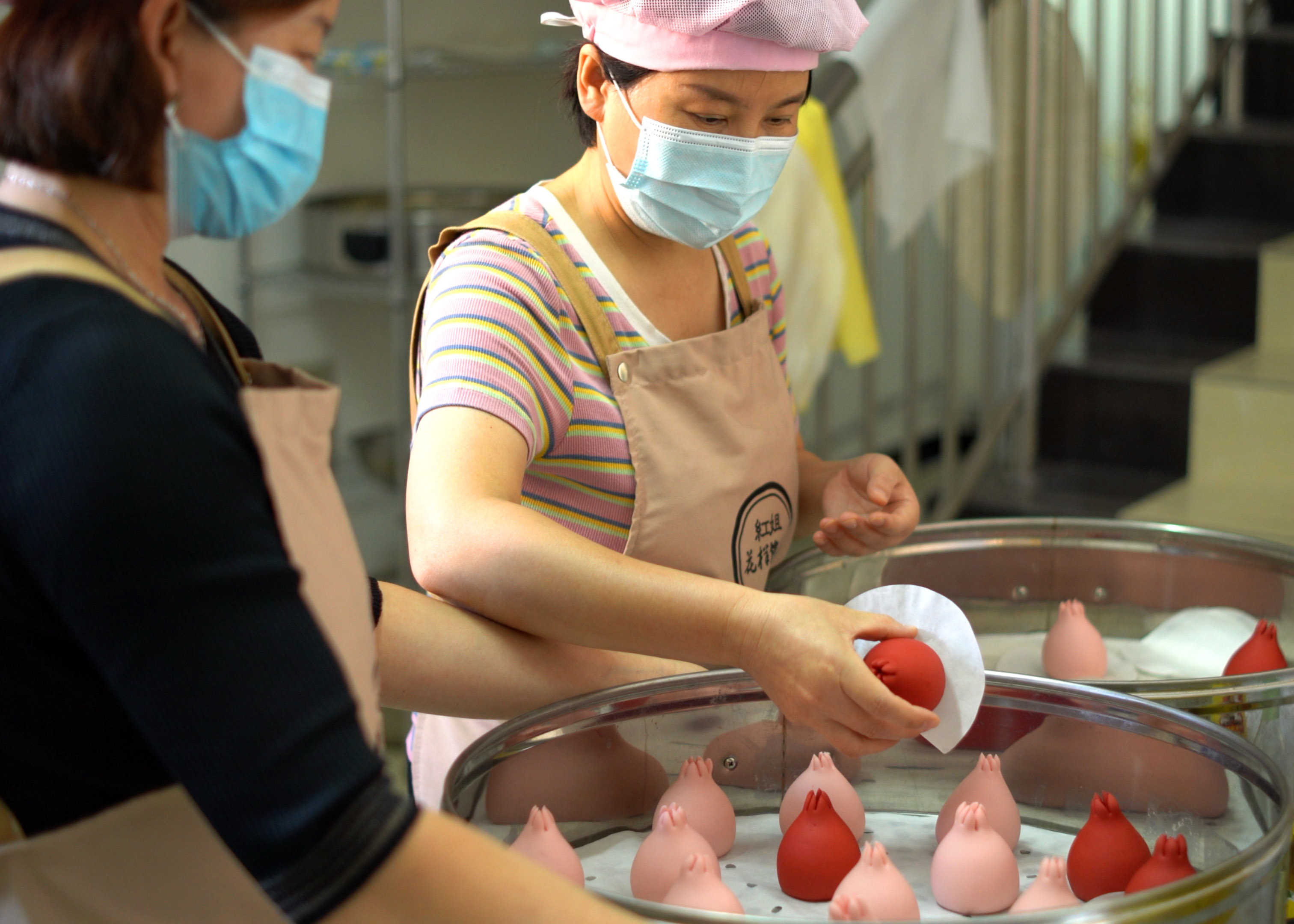 解春红一边忙着手里的活儿一边介绍:“做这个花馒头必须要把面揉好压好,我们仅一道压面的工序就要重复三十多遍。压好的面既有光泽,做出的造型也漂亮,不易开裂。”手工制作的花饽饽均采用天然健康的原材料,口感好,造型丰富,而且富有美好的寓意,能满足人们生日、婚礼、乔迁、庆典等不同场合的庆祝需求。“现在大家对这种既传统又健康的东西越来越认可,我们中秋节的订单已经忙不过来了。”