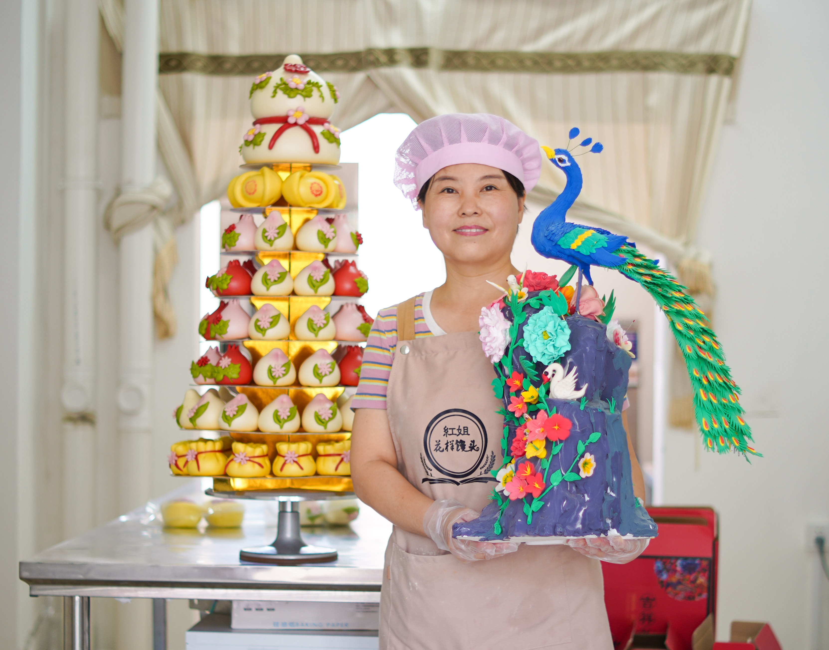 解春红有一双巧手又肯下功夫琢磨。今年3月,她偶然在直播平台看到了山东一位花糕艺人的直播,便萌生了要学学这一行的想法。随后,她远赴山东跟随当地花糕制作师傅专门学习了一个多月,自己的制作技艺很快得到提升。