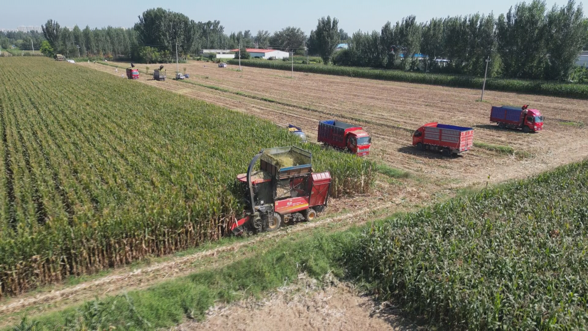 眼下正是玉米收获时节,在衡水市安平县乡村振兴示范区,随处可见正在忙碌的玉米茎穗联合收割机。与一般的玉米联合收割机相比,这种机械的个头儿明显要大一些,在收获玉米穗的同时还可以收集打包碎秸秆,一捆捆秸秆装满一辆辆货车,再运往养殖场制成饲料,让农民增加了一项额外收入。