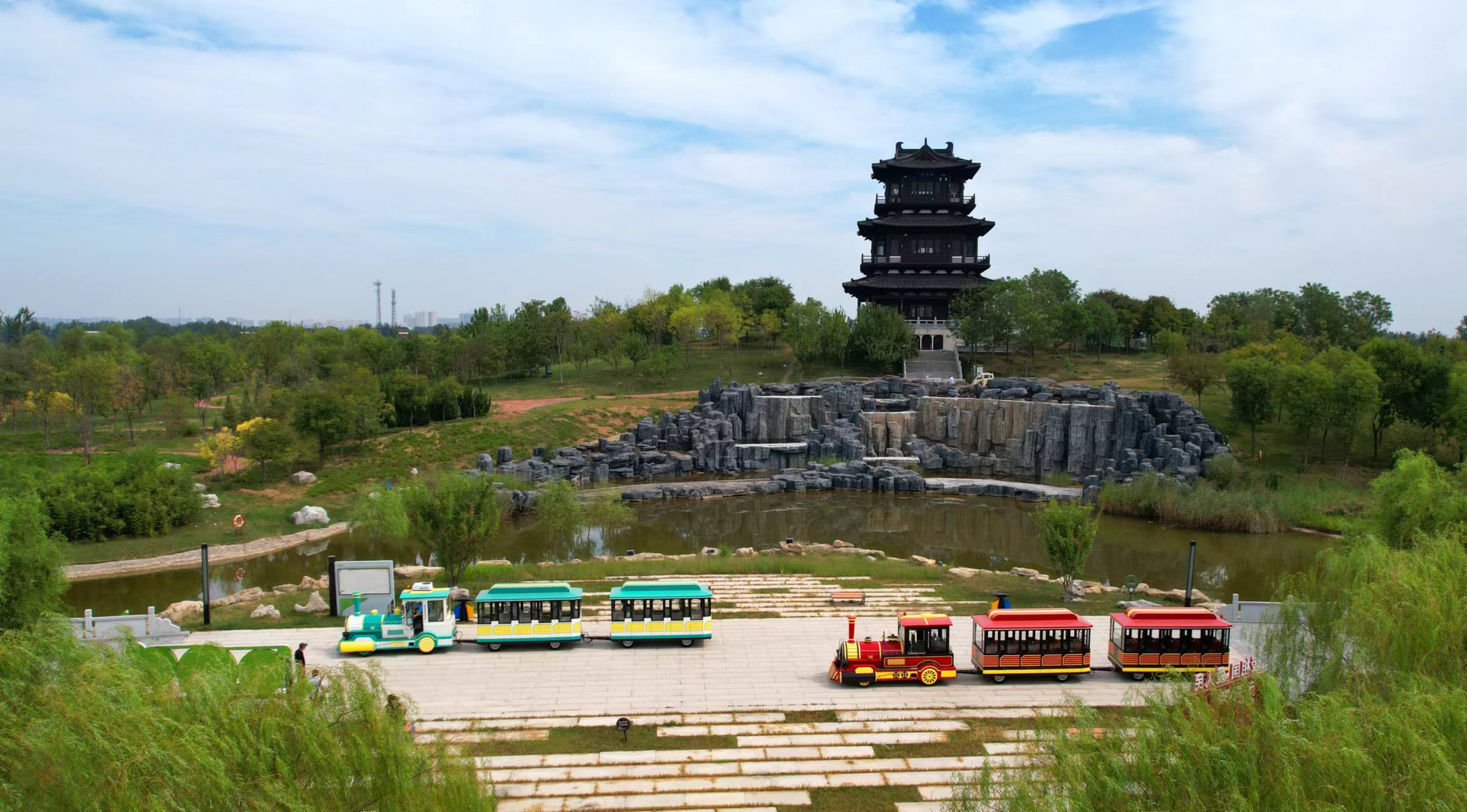 “各位乘客请坐好,我们的小火车要出发啦!”坐进窗明几净的车厢,降下超大玻璃视窗,凉爽的风让人感到清爽惬意。“这一片是鸭鸭乐园,包括鸭鸭探索乐园、太空岛、元气站三大区域,是小朋友和家长们畅玩的天地;那边是衡水湖湿地生态馆,可以了解湿地科普知识,沉浸式体验衡水湖四季数字化视觉盛宴;还有4000㎡的历史文化博览馆,展现了衡水从上古时期到如今的灿烂文明。”导游介绍,一列观光小火车,串联起各个景点,游客可以在自己喜欢的景点下车,也可以游览全程,省时又省力。