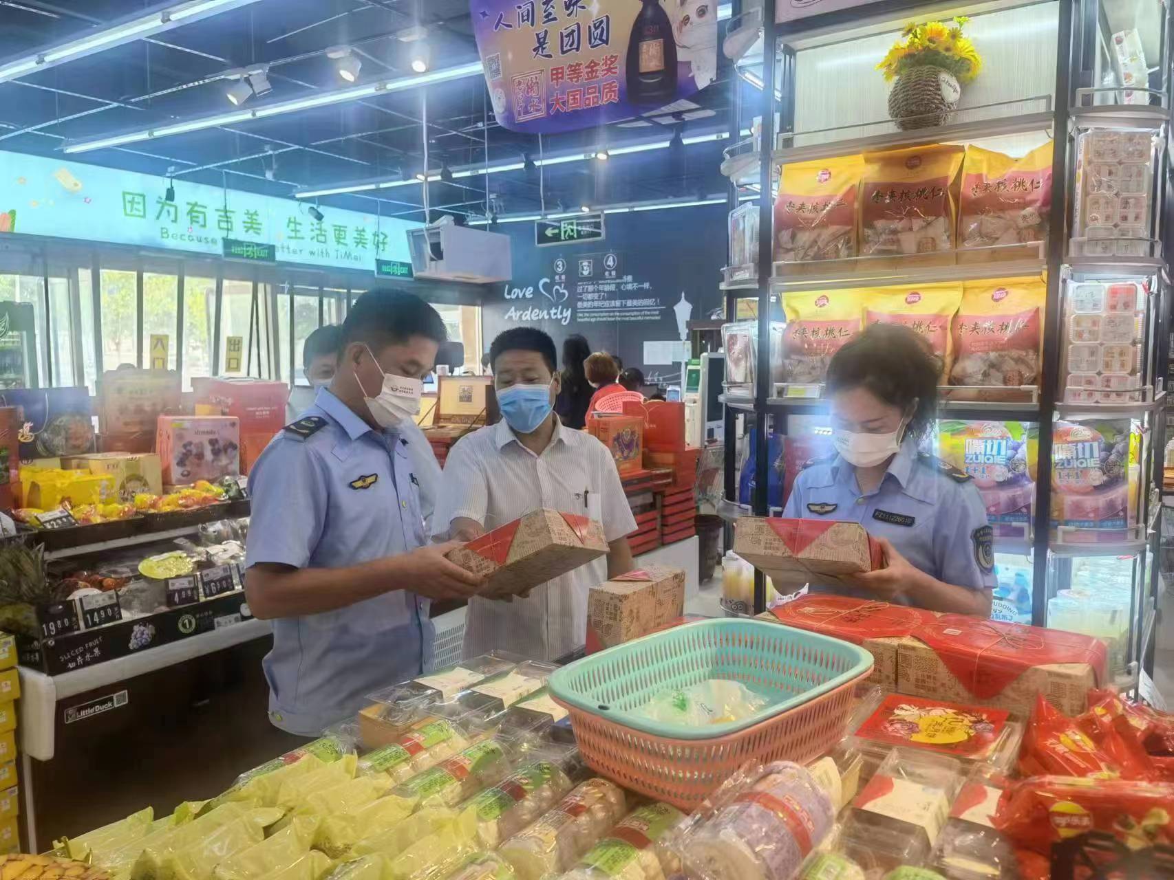 执法人员重点对商超、农贸市场、便利店、蛋糕店等月饼生产经营单位开展专项检查,对月饼生产加工单位生产操作过程和生产环境严格把关,确保生产加工环境条件符合食品生产要求。执法人员重点查看月饼生产经营单位主体资质是否规范齐全,进货渠道是否合法,食品及原材料等索证索票是否齐全,是否履行进货查验制度并留存相关进货票据和供货商有效资质证明文件,预包装月饼外包装标签标识信息是否规范,是否存在销售“三无”月饼、“天价”月饼、礼盒过渡包装月饼等行为。同时,执法人员对在售月饼是否明码标价进行严格检查,确保价格与产品相对应,一目了然。截至目前,共检查月饼生产经营单位23家,下达责令整改通知书2份。