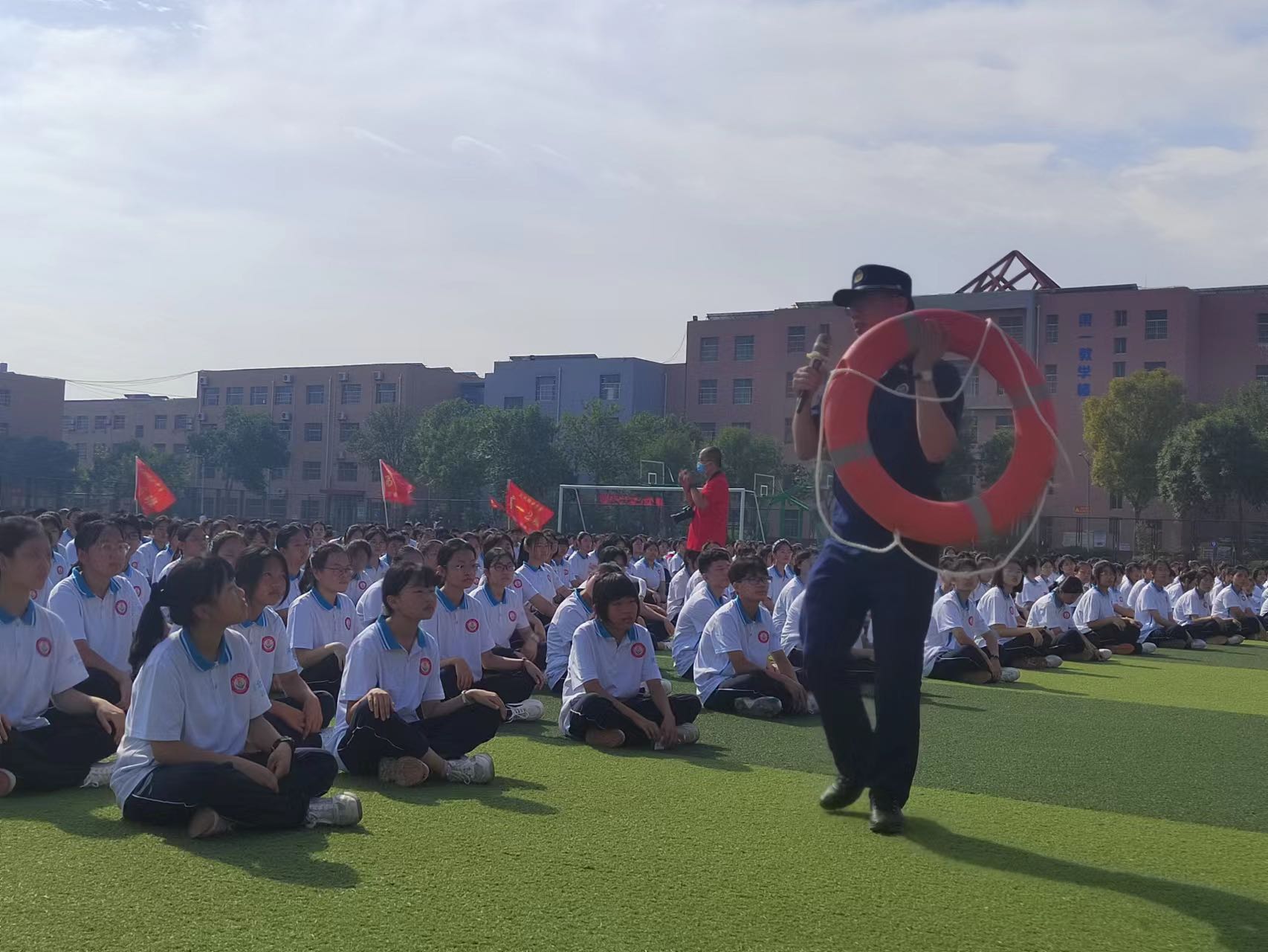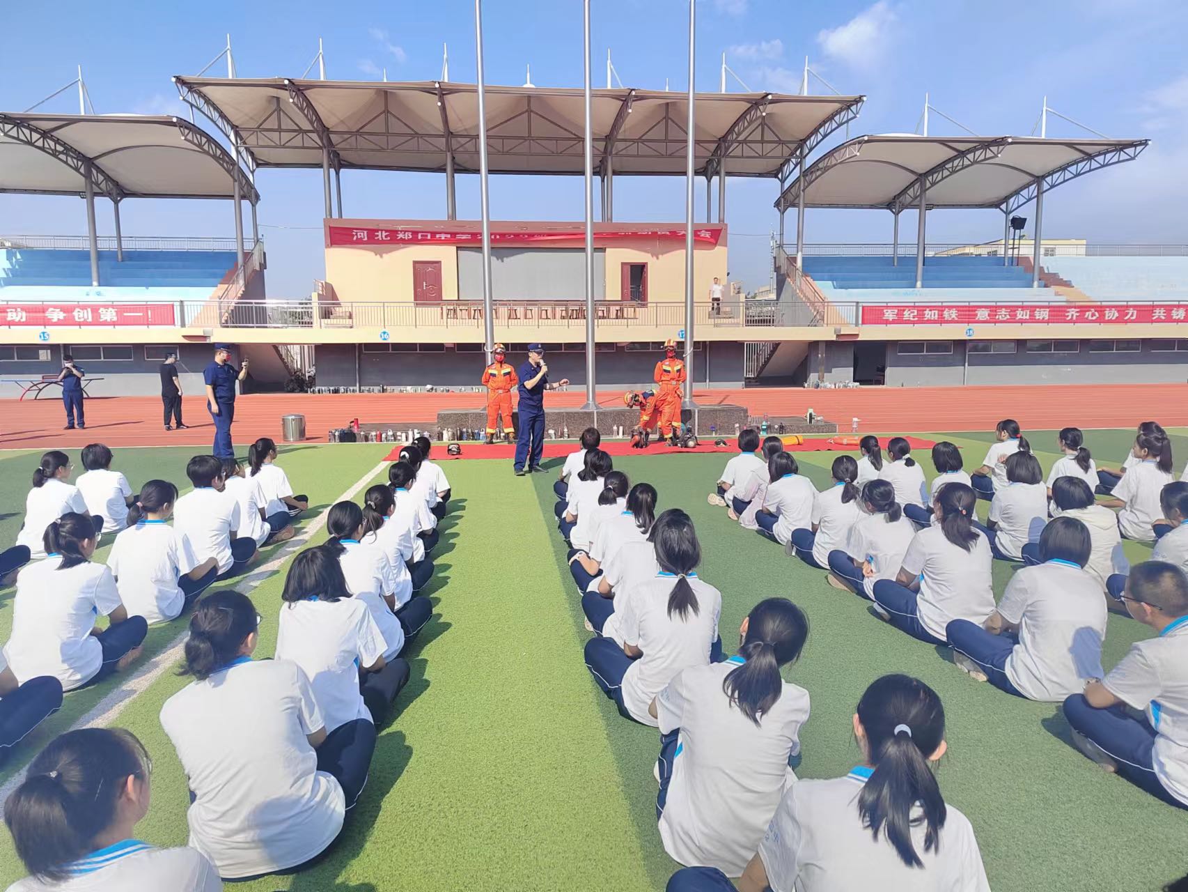 为进一步加强学校消防安全工作,切实提升广大师生消防安全意识和自救互救能力,有效预防和减少校园火灾事故的发生,9月9日上午,故城县消防救援大队联合教育部门走进高中开展消防安全“进军训”活动,为新生们上好新学期消防安全“开学第一课”。