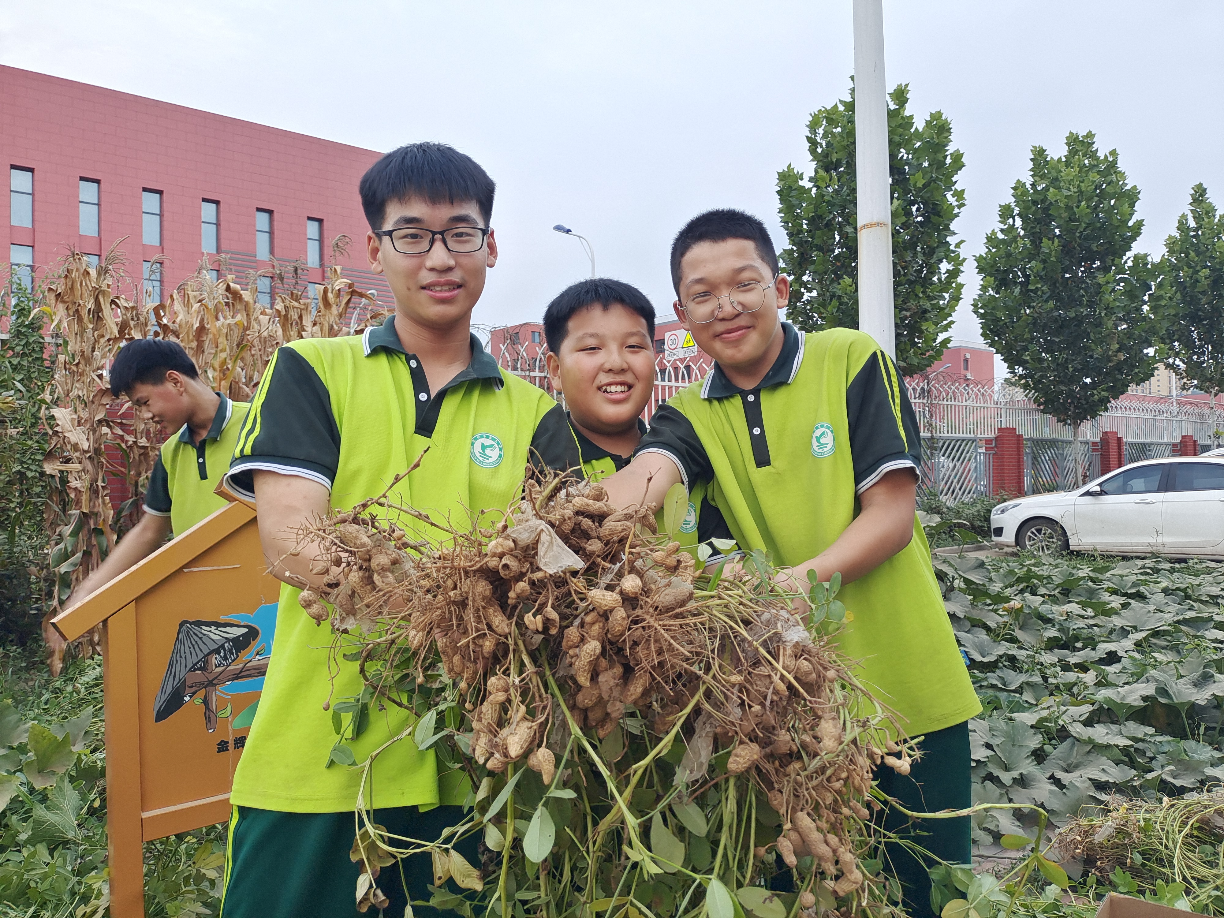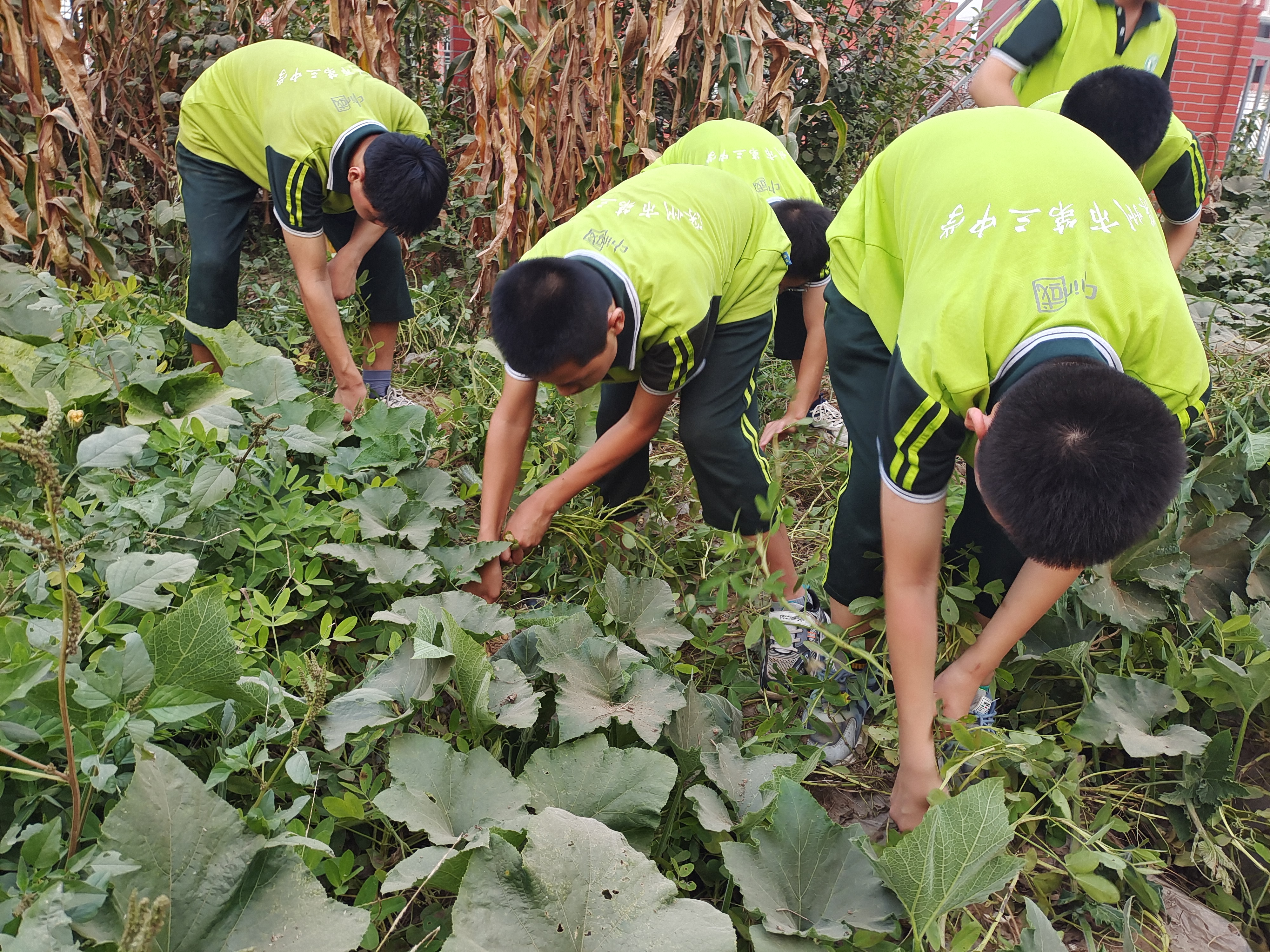 图为:在深州市第三中学劳动实验基地,师生们在采摘花生。高占峰、金辉 摄