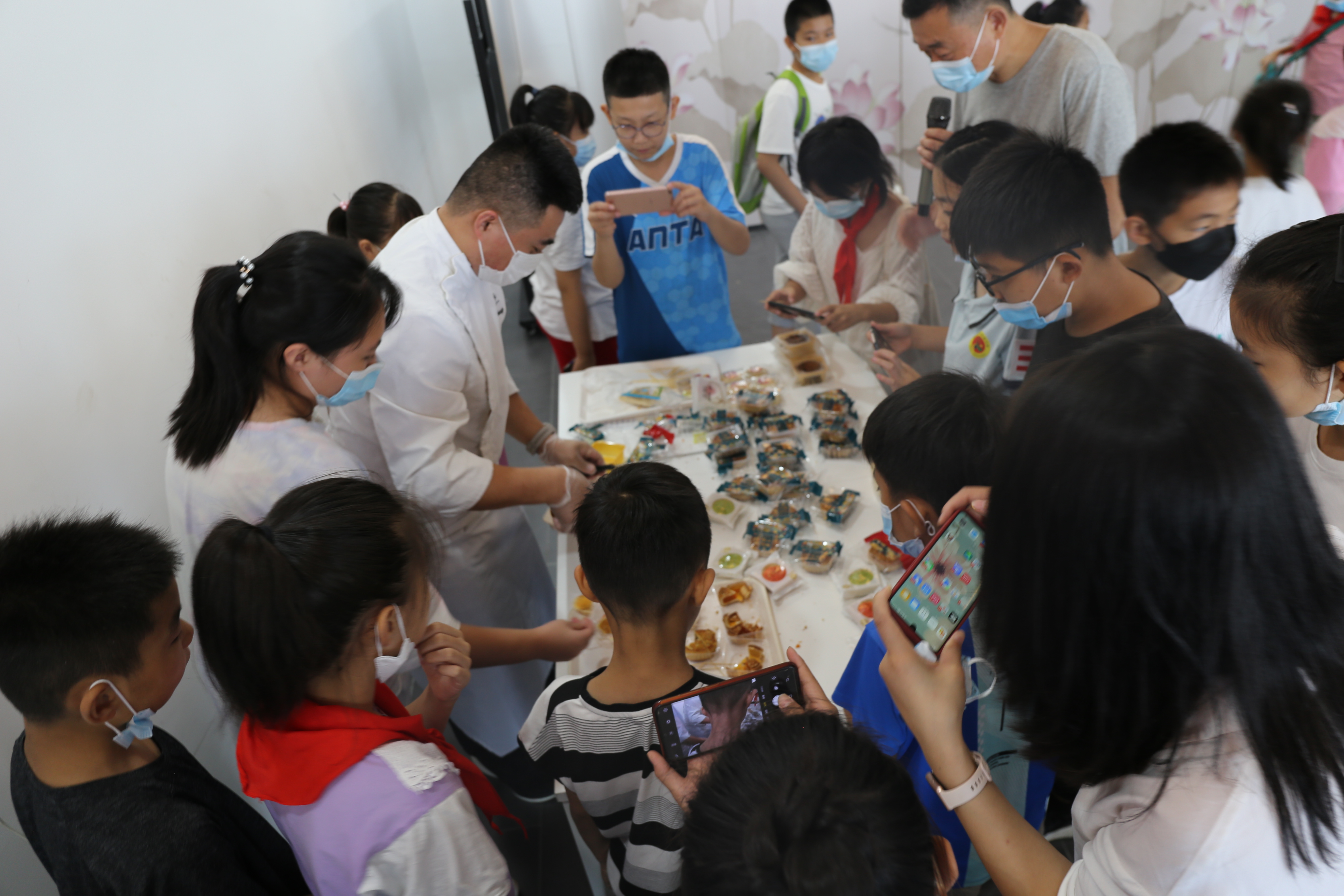 活动中,衡水市图书馆工作人员还给小记者们发放了一张玉兔卡。小记者们在空白的卡片上,填上了中秋诗词。随后,衡水思味特好歌食品科技有限公司的工作人员向小记者们讲述了月饼的分类、月饼馅和皮以及制作方法。在期待中,思味特好歌工作人员将十几种不同馅的月饼切开,分送给小记者们品尝。