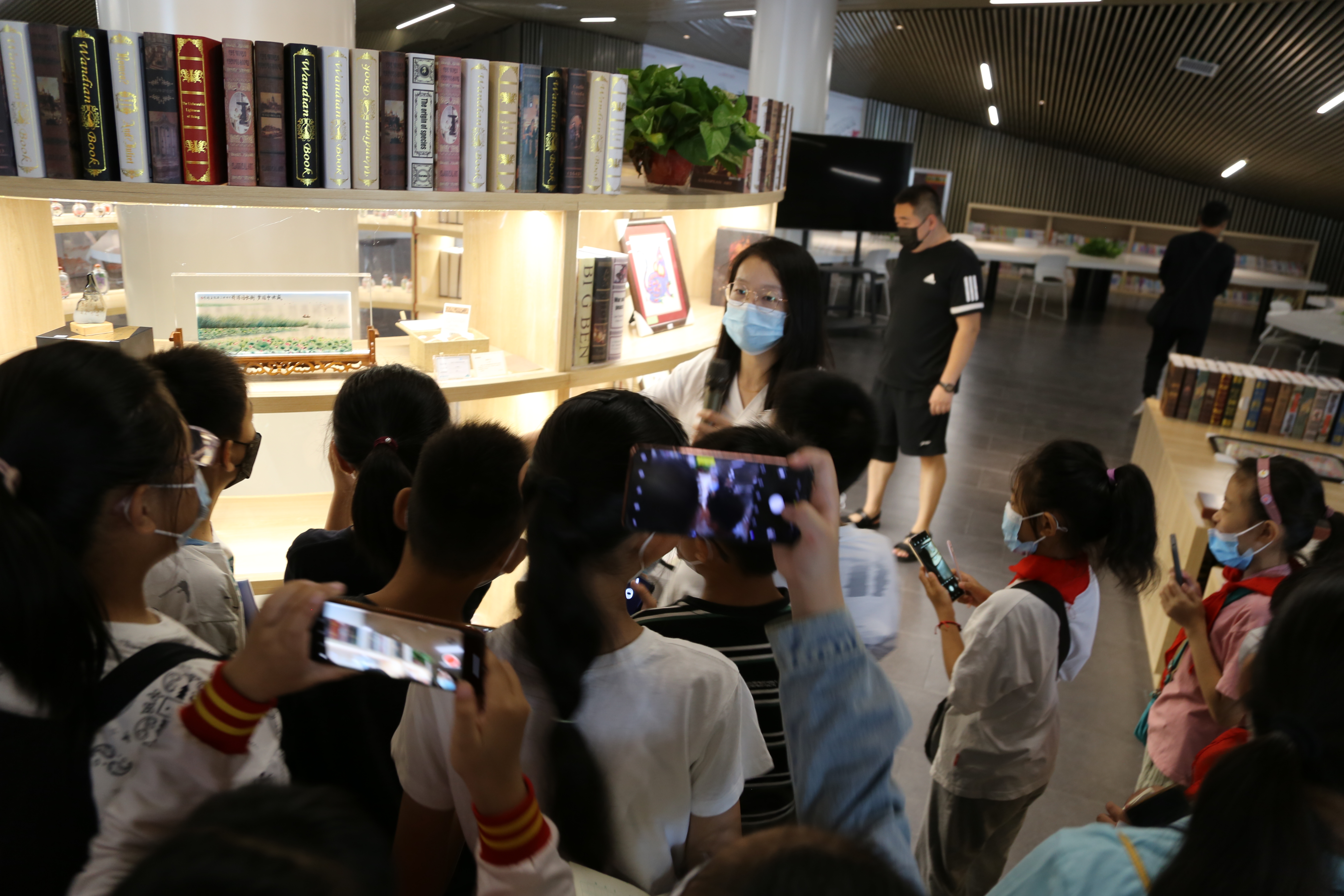 宽敞的城市书房引起了小记者们极高的兴趣。活动开始前,小记者们参观了城市书房。作为衡水市图书馆分馆,1600平方米的畅读空间,涵盖综合阅览区、国家图书馆文献专区、国图信息服务区、洞洞书屋、文创产品区、非遗展示区、综合培训教室等区域。馆内16000余册书籍囊括国图文津图书奖获奖书籍、百部经典系列丛书等。