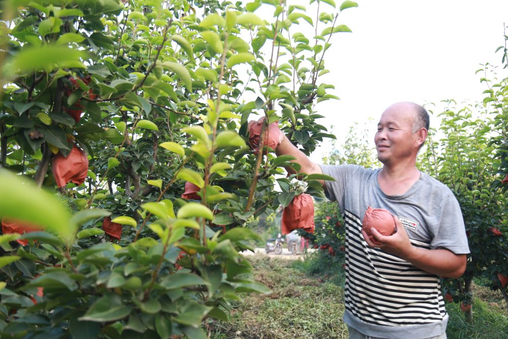 河北馆陶县房寨镇农民在梨园内采摘黄梨。(受访单位供图)