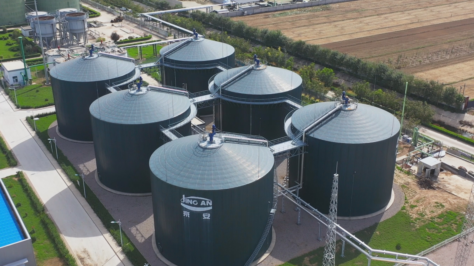 在绿树成荫的京安现代农业园区内,数个大型厌氧发酵罐引人注目,应用专利预处理技术,粪污在这里面发酵产生沼气,可年产657万立方米沼气,每年能发1500余万千瓦时的绿电。