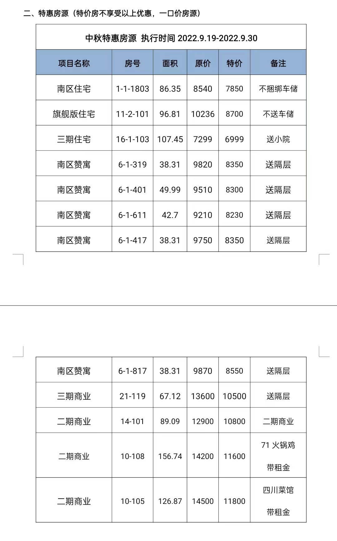 二、特惠房源(特价房不享受以上优惠,一口价房源)
