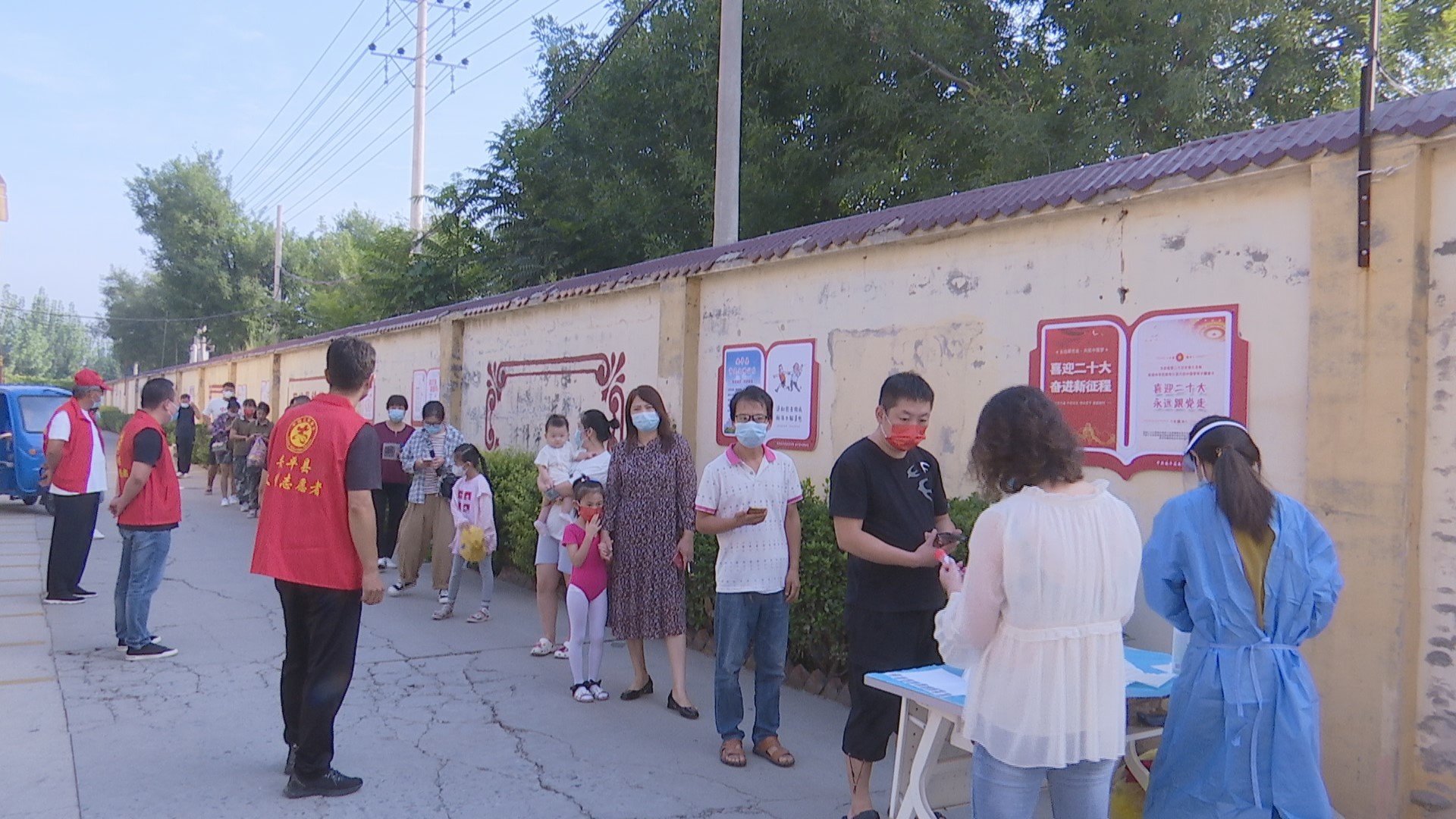 党员在核酸采集工作中维持秩序。李金凤 摄