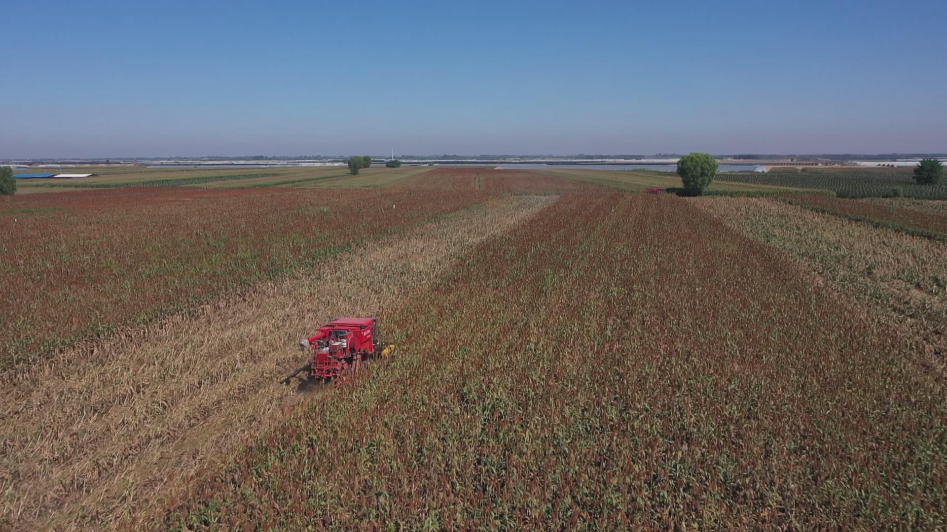 日前,在衡水市饶阳县南岩村的高粱地里,沉甸甸的红高粱穗随风摇摆,一体化收割机穿梭在火红的高粱地里,奏响了丰产丰收的序曲。