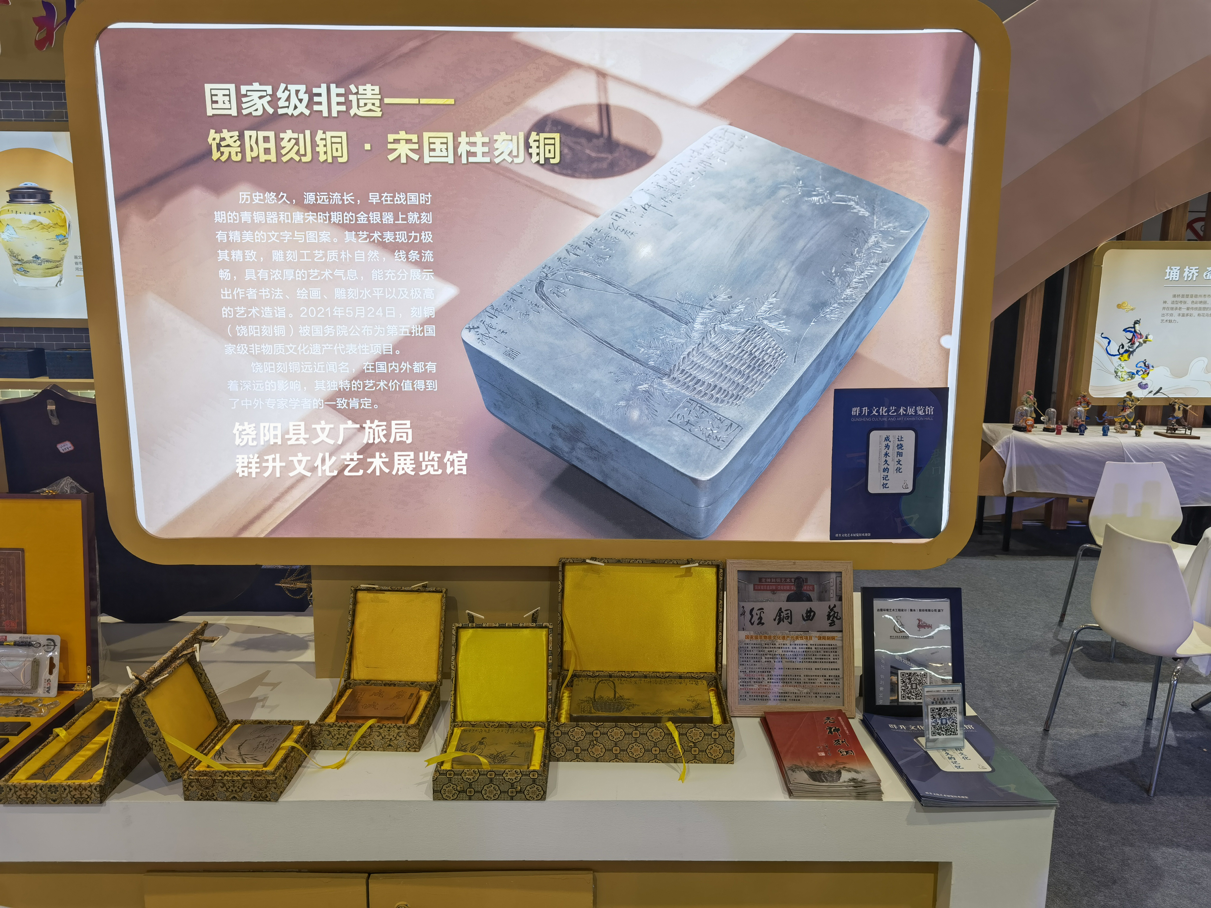 据悉,此次展会2700余家参展商参会,来自中国、土耳其、尼泊尔、俄罗斯、加纳、巴基斯坦等20余个国家和地区的手造精品及特色文化产品集中亮相。为弘扬国家级非遗代表性项目饶阳刻铜,在饶阳县文广旅局指导下,饶阳群升文化艺术展览馆与诗经里·饶阳风物展览馆共同携手饶阳刻铜参展,展出的作品为河北省工艺美术家、河北省工艺美术大师、河北非遗手工刻铜传承人宋国柱创作的三方市井题材刻铜作品。
