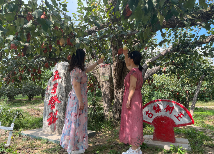 游客在深州古梨园游玩采摘。深州农业农村局供图