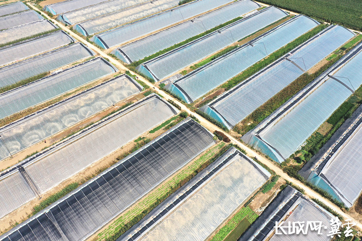 航拍南和区辛庄村设施蔬菜大棚(无人机照片)。