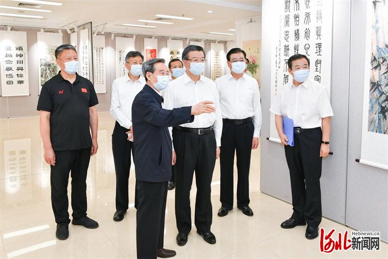 9月26日上午,省委书记倪岳峰在省组织系统调研。这是倪岳峰在省老干部活动中心参观老干部迎接党的二十大书画展。 河北日报记者赵海江摄
