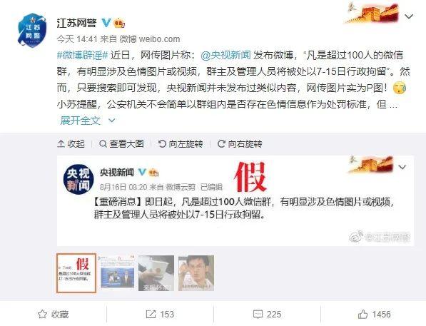 当时,江苏网警通过官方微博辟谣,明确表示“公安机关不会简单以群组内是否存在色情信息作为处罚标准,但身为群主,发现群内有人传播淫秽色情、赌博、暴力血腥等信息后,应当及时采取提醒、劝阻、移出群聊等操作,对于未履行监督管理职责的,才需要负相应法律责任。”
