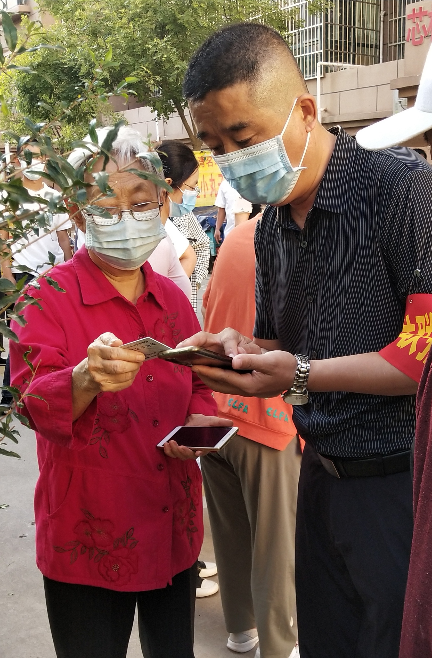 他们提醒群众保持一米线距离,协助登记、引导,针对老弱儿童等特殊群体开展帮扶。“大爷,咱往后退一退,注意保持一米距离”、“阿姨,请戴好口罩”、“叔叔,您有核酸快检码吗?不会弄啊,不着急,我帮您看看”……核酸采集紧张而有序,群众每遇到任何问题,转身就能看得见党员志愿者,问题立刻迎刃而解。