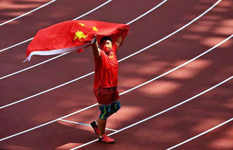 巩立姣东京奥运会夺冠后庆祝胜利。图片来自新华社