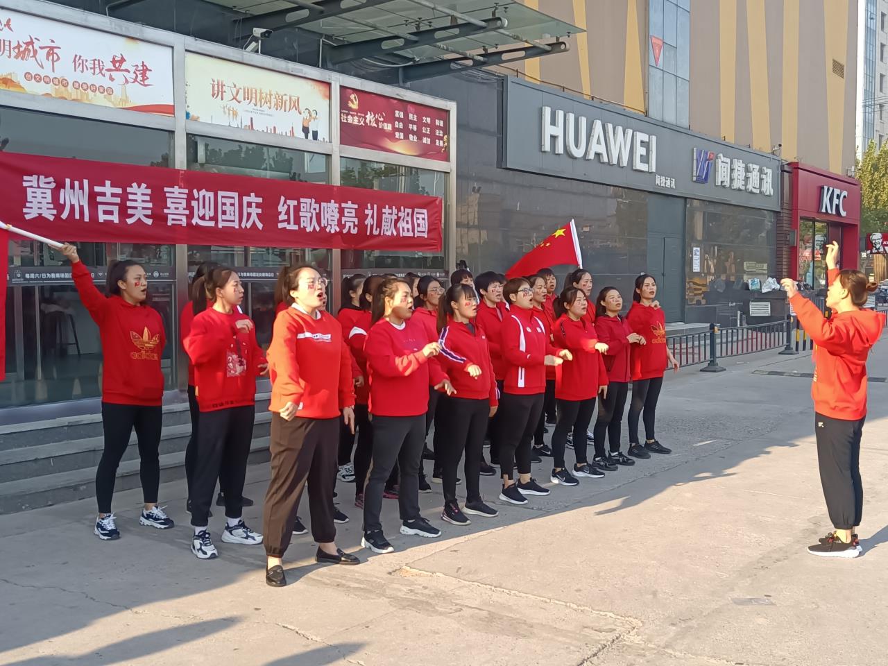 吉美购物广场员工唱红歌。