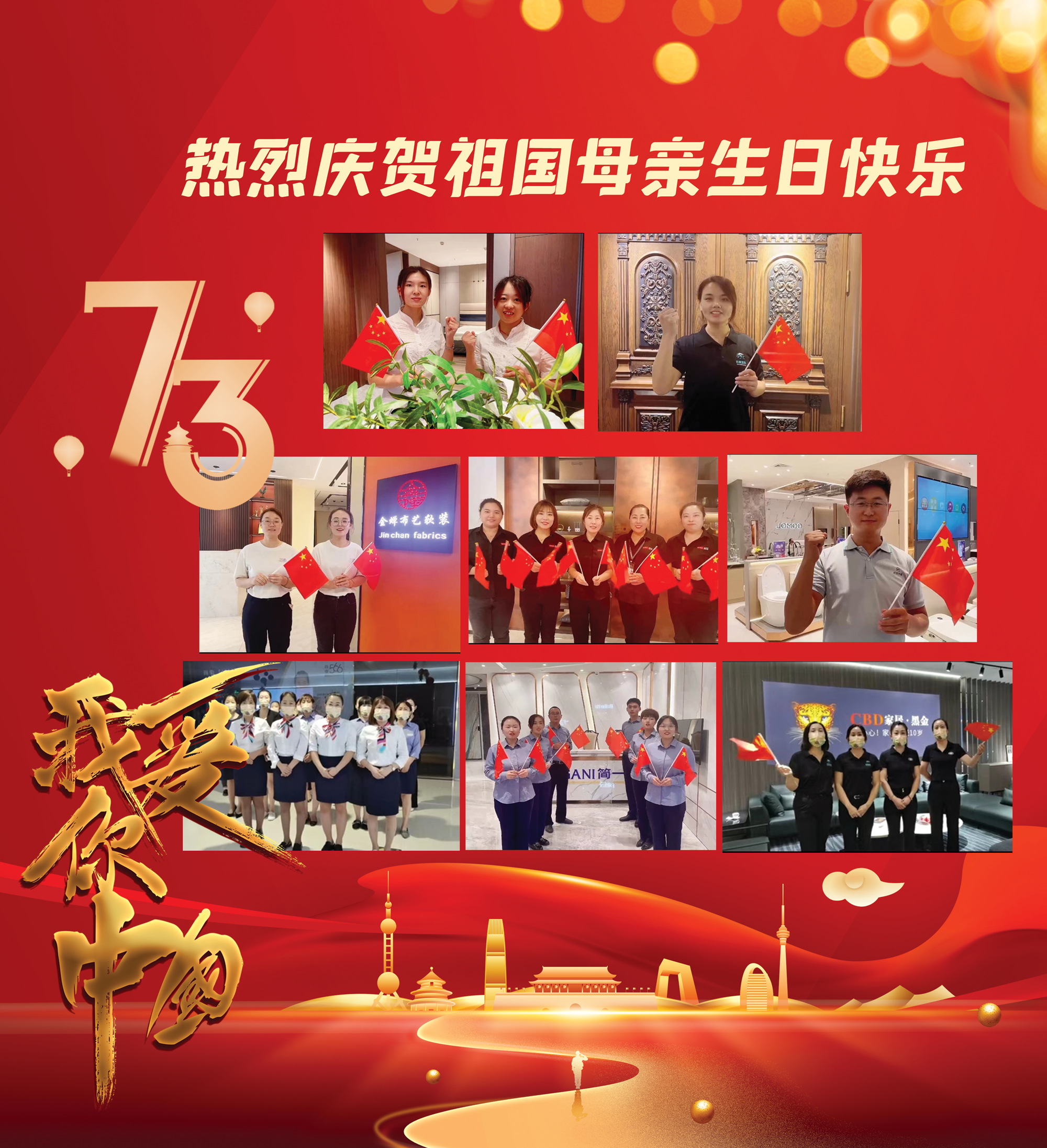 集团各卖场积极营造国庆氛围,挂国旗,张贴国庆招贴画等,国旗飘扬,处处洋溢着欢乐、喜庆的浓厚节日氛围,成为一道靓丽的风景线。各卖场或是开展合唱爱国爱党歌曲,或是诗朗诵礼赞伟大祖国;或是推出身边优秀党员,让他们用朴实的语言讲述自己亲身经历的创业及奋斗发展的故事,展现对家国的感恩之情以及怀揣梦想与携手共进的决心。