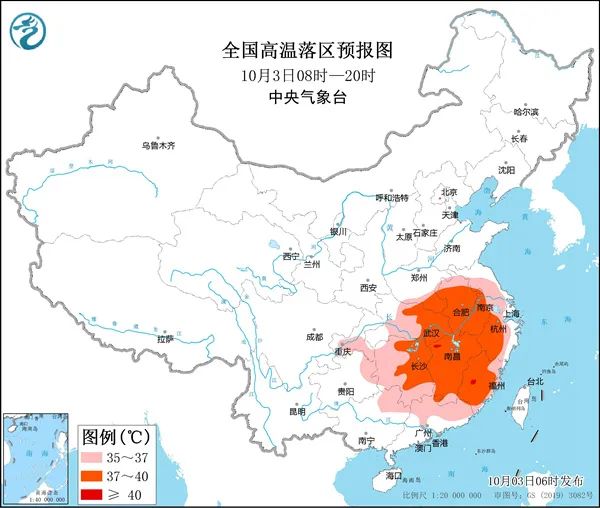 今明两天,南方高温仍将持续,长沙、南昌、杭州最高气温可能再次打破10月纪录。预计,10月3日至10月4日,江南、华南北部、江汉、江淮等地将出现较大范围高温天气过程,日最高气温一般有35~37℃,部分地区38~39℃,局地可达40℃以上。中央气象台今晨继续发布高温黄色预警。