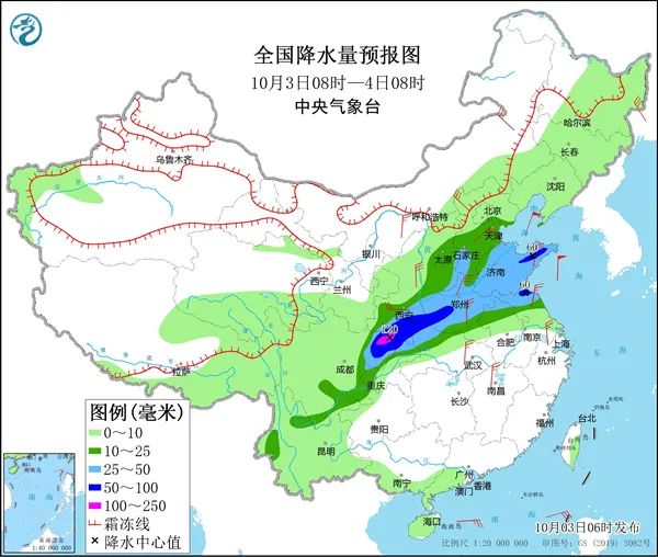今年国庆假期,高温、强降雨、大风降温齐聚我国天气舞台。今天(10月3日),复杂的天气形势仍在继续上演,南方大部地区在强悍的副热带高压掌控下,多地热如盛夏,北方受强冷空气影响,将迎来剧烈降温,而在冷暖空气交汇区域,四川盆地至黄淮一带强降雨不断,局地还将遭遇极端降水。