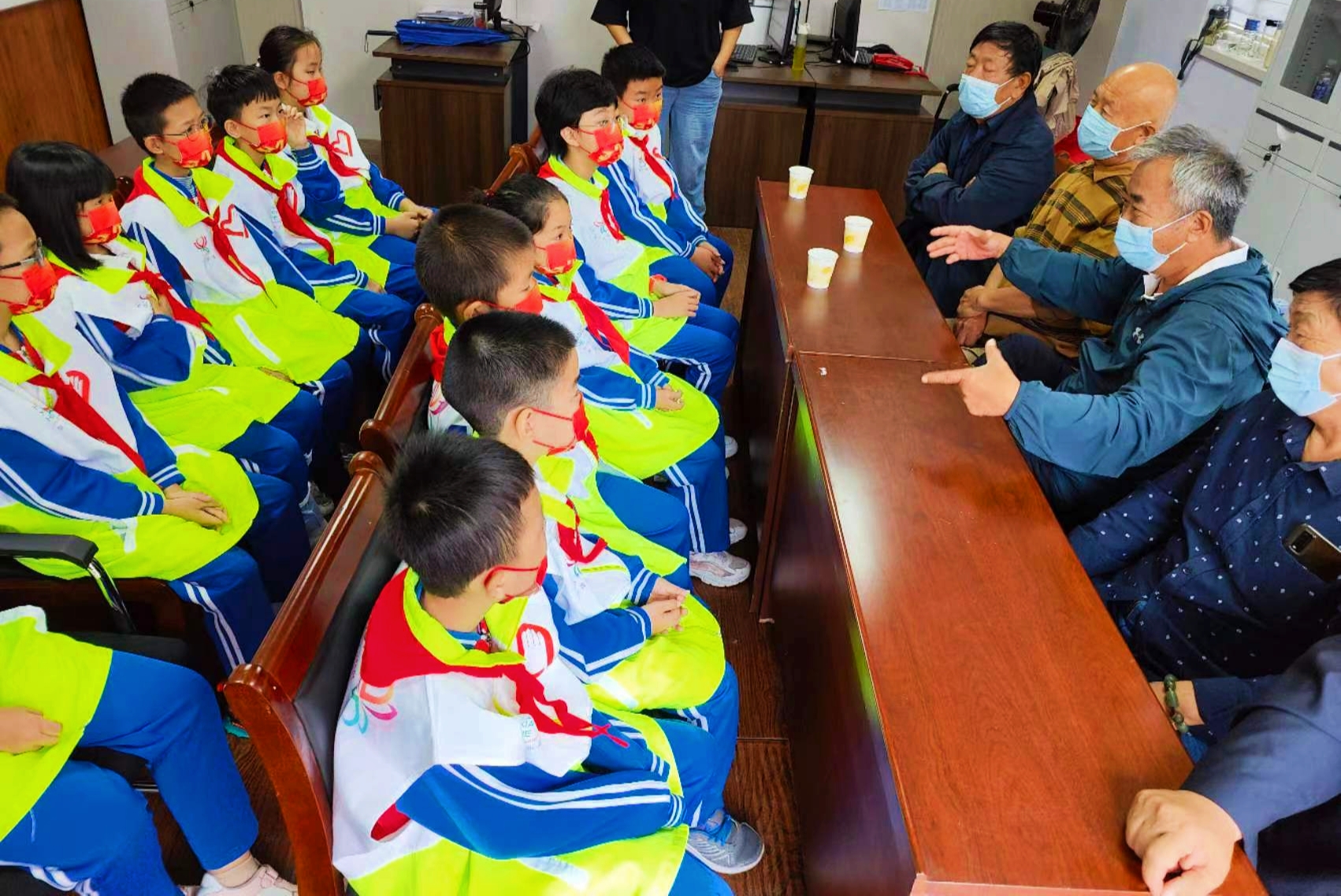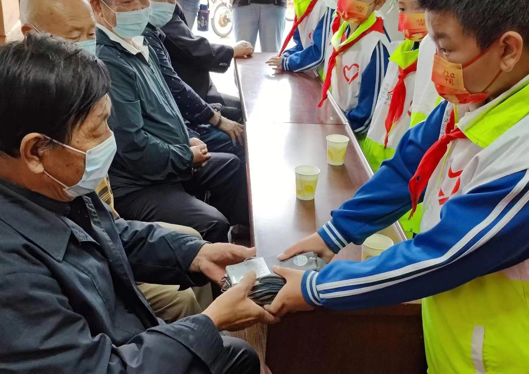 孩子们纷纷拿出自己用零花钱购买的棉袜和水杯,一一递到老党员手中,为他们送上诚挚问候和节日祝福。最后大家起立高唱《歌唱祖国》,表达对祖国母亲节日的祝福,活动在激情嘹亮的歌声中圆满结束。