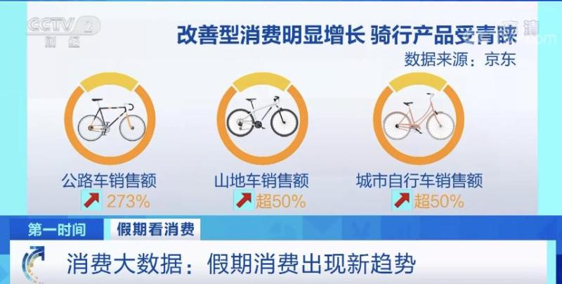 另外,随着户外和骑行爱好者的增加,假期里户外鞋服、户外装备、滑轮滑板和骑行装备的销售额均较2021年假期同比增长超过50%。在与骑行有关的产品中,公路车最受欢迎,销售额同比增幅达273%,山地车和城市自行车的销售额则增长超过50%。