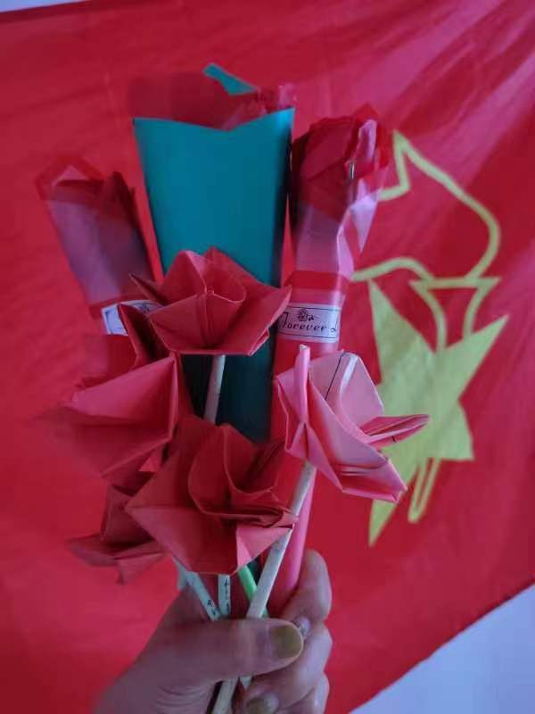 活动当日清晨,该校少先队员代表举行升旗仪式,并在冉冉升起的五星红旗下作主题演讲。同时,各班同学以独诵、合诵、配乐朗诵等多种形式,表演了《祖国啊,我亲爱的祖国》《四渡赤水出奇兵》等作品,展现出学生们热爱祖国大好河山的无限豪情和优秀的创作才能。孩子们还巧手折叠纸花束、与国旗合影,祝福祖国母亲繁荣昌盛。饺子是团圆美满的象征,兵曹完小的师生们齐动手,包饺子、煮饺子、吃团圆饭,大家的脸上都洋溢着幸福的笑容。