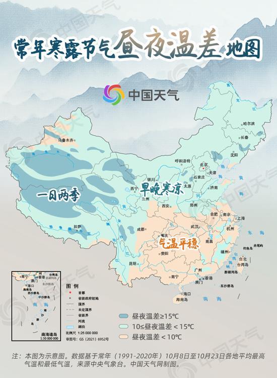 寒露节气我国北方大部昼夜温差可达10℃以上